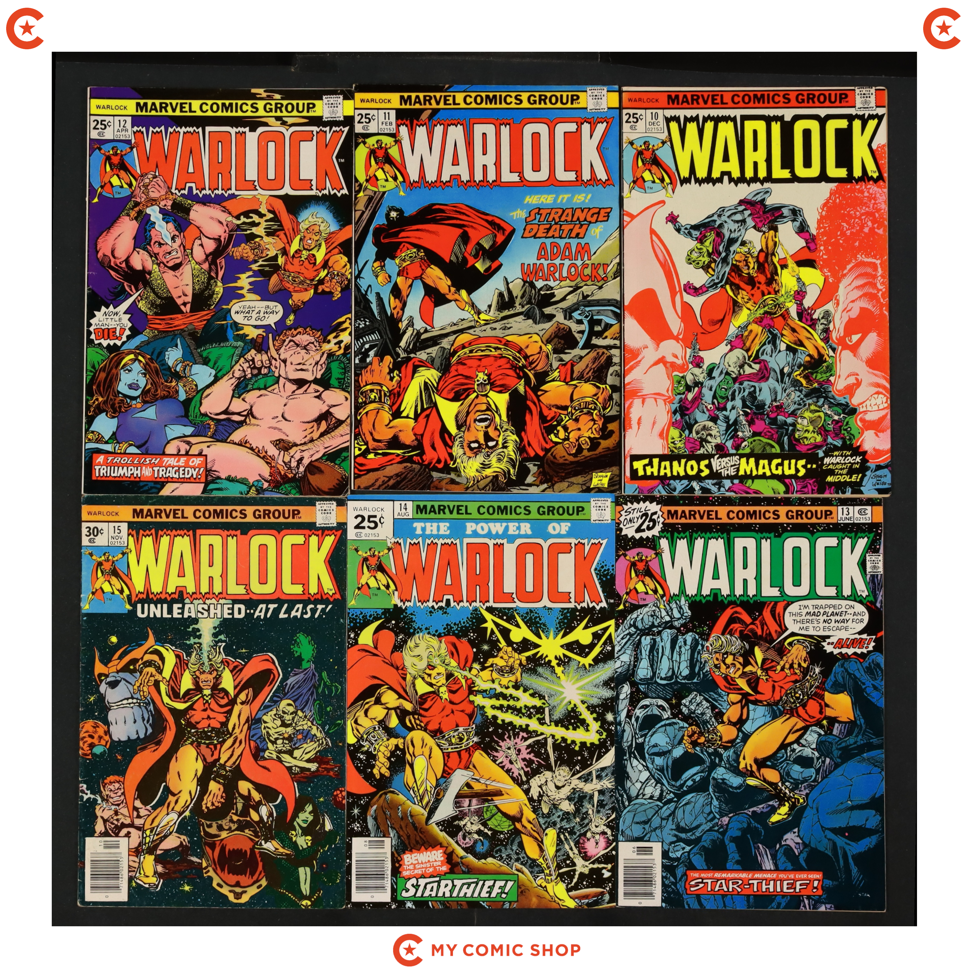 Issues 2-5, 8-15 of Warlock (1972 Marvel 1st Series). Most will grade in the VG to FN range with 3,5,8 grading GD and 4 grading FR.