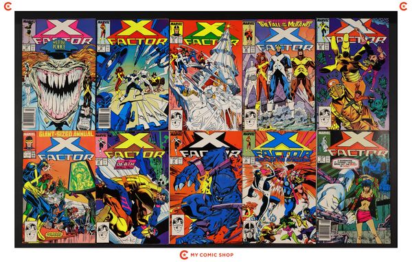 Issues 60, 61, 62, 65, 66, 67, 69, 70, 71, and 72 of X-Factor (1986 1st Series Marvel). Most will grade in the FN+ to VF range.