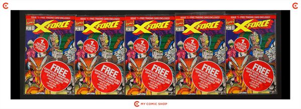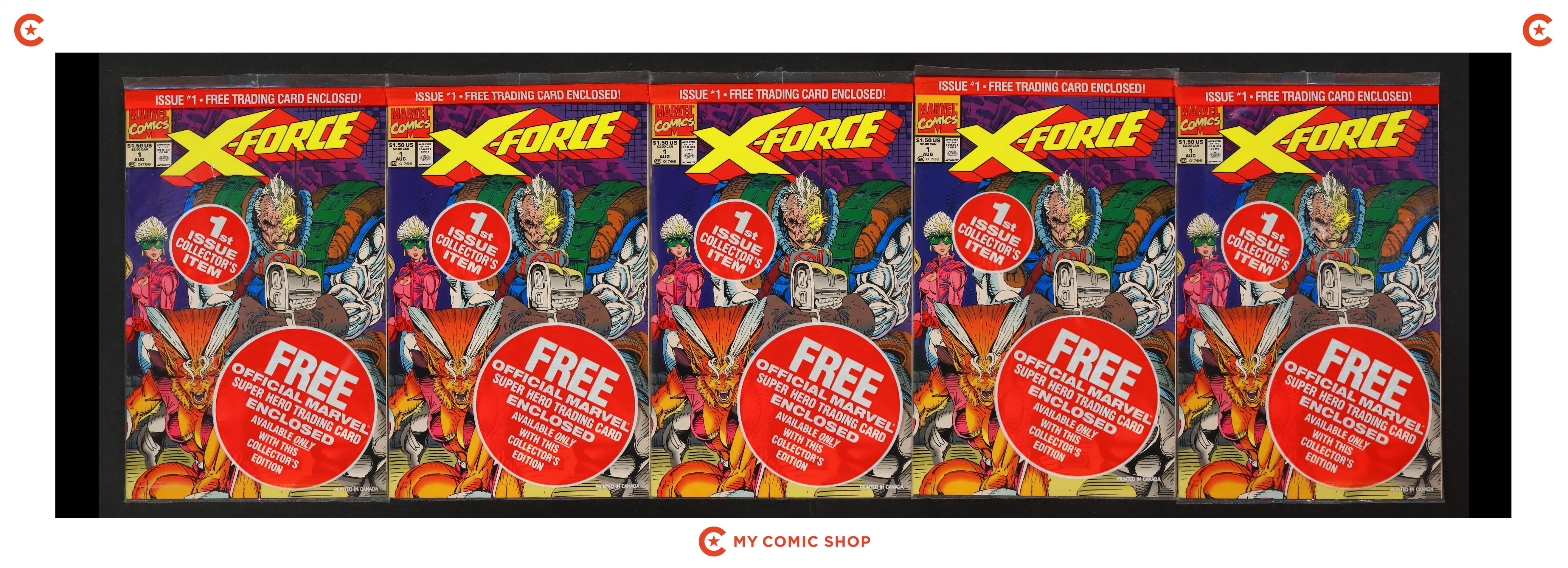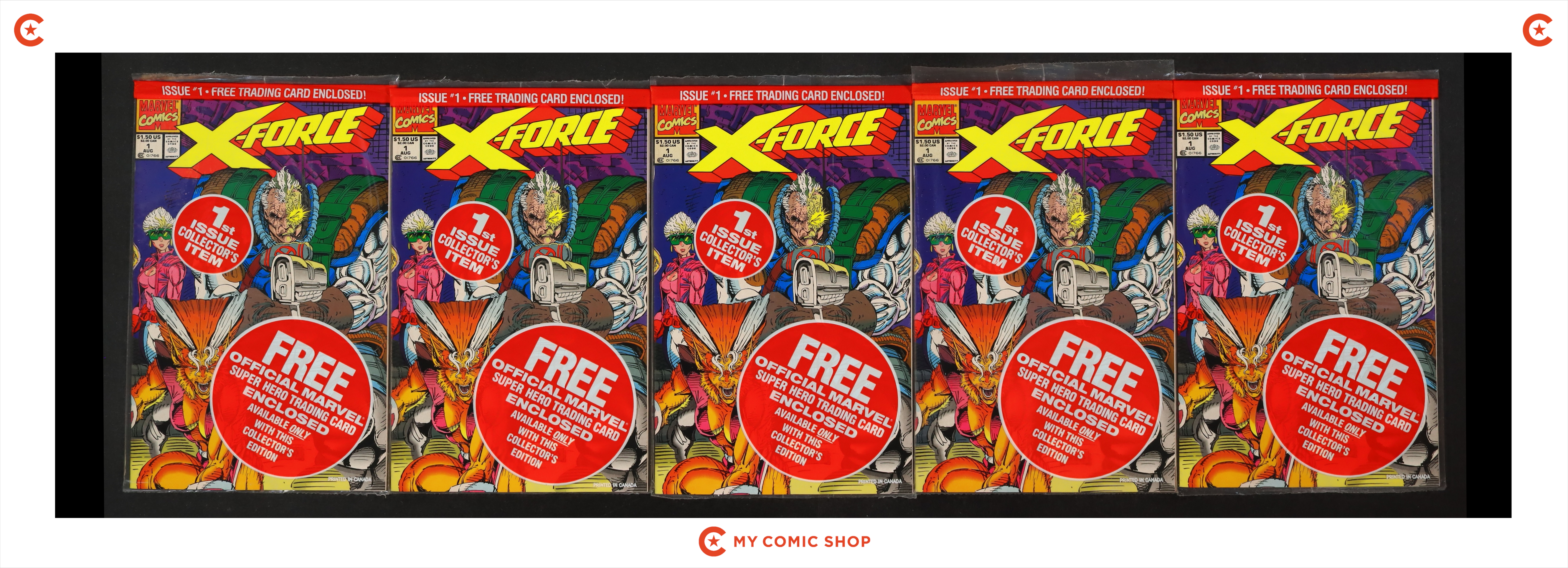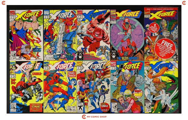Issues 1A, 1B, 1C, 1D, 1E of X-Force (1991 1st Series). Most will grade in the VF to NM range.