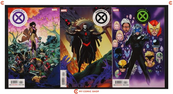 Issues 1A, 3A, 4A, 5A, and 6A of House of X (2019 Marvel), and issues 1A, 2A, 3A, 4A, 5A, and 6A of Powers of X (2019 Marvel). Most will grade in the VF to NM range.