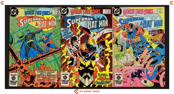 Issues 271, 283, 284, 291, 293, 295, 296, 300, 303, 304, 305, 306, and 307 of World's Finest (1941). Most will grade in the VG to FN range.