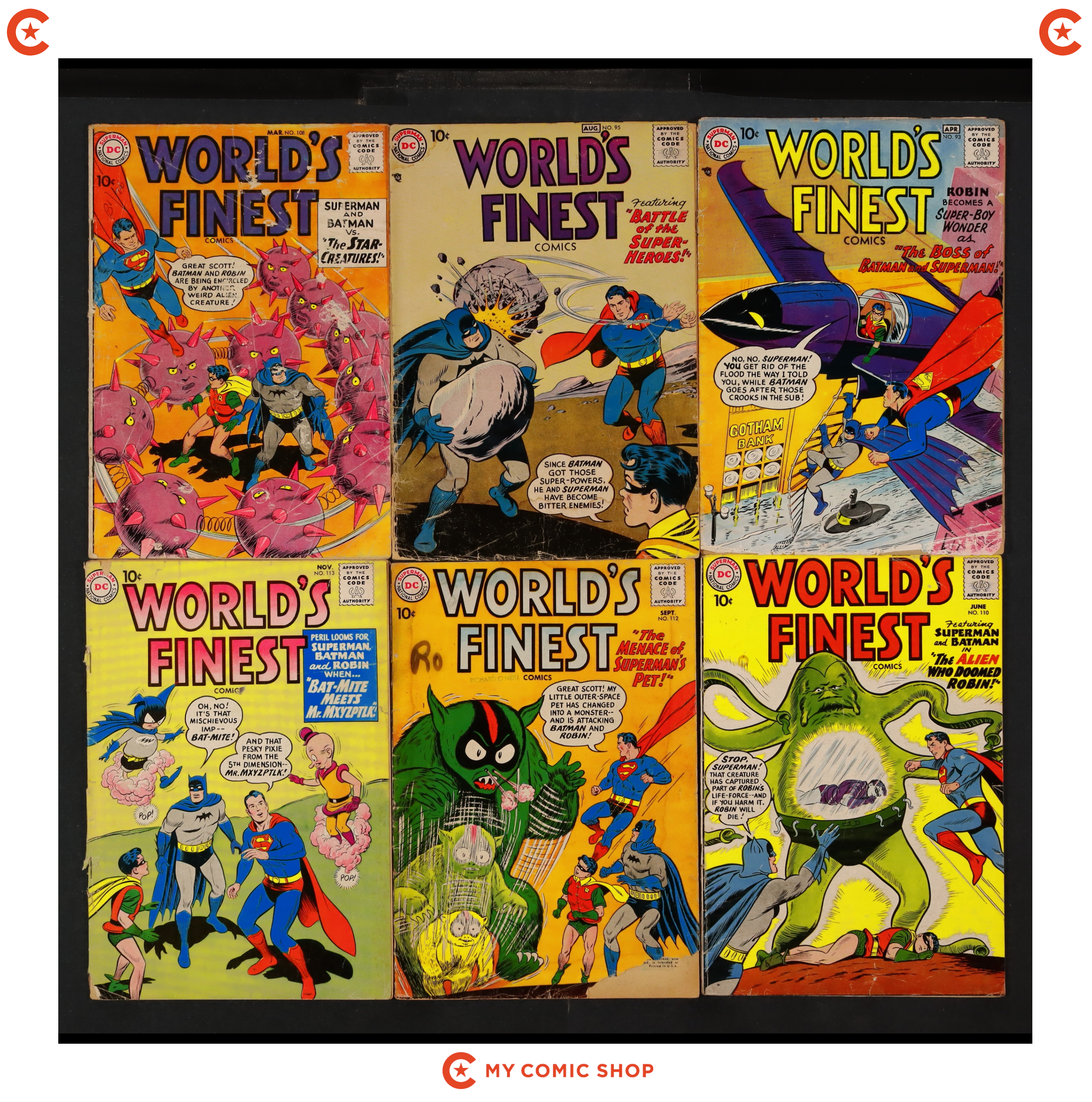 Issues 93, 95, 108, 110, 112, 113 of World's Finest (1941). Most will grade in the FR to GD range with #95 grading PR.