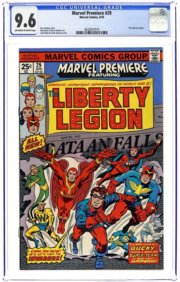 Starts Jan 19 The Invaders/Liberty Legion Crossover: Part 2 of 4 - "Lo, the Liberty Legion!" Written by Roy Thomas. Art by Don Heck and Vince Colletta. Story continued from Invaders (1975-1979 Marvel 1st Series) #5. The worst case scenario has happened! The diabolical Red Skull has ceased control of the minds of the Invaders. Now Captain America, Prince Namor, and the Human Torch fight for him. Bucky must assemble a team of America's homefront heroes to save his friends and America from the villain's evil plans. Enter: The Liberty Legion! Featuring the Golden Age heroes The Patriot (Jeffrey Mace), Red Raven, the Thin Man, the Whizzer, Miss America, Jack Frost and the Blue Diamond. Story continues Invaders (1975-1979 Marvel 1st Series) #6. 32 pages FC. Marvel Value Stamp. Cover price $0.25.