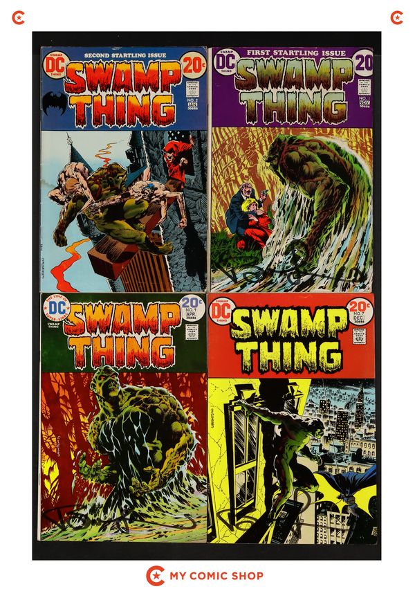 Issues 1, 2, 7, 9 of Swamp Thing (1972 1st Series) signed by Berni Wrightson. Issues 1, 7, 9 include autograph certification from The Signed Edition, issue 2 includes no autograph certification and is signed on first page. Most will grade in the GD to VG range with #9 grading FN.