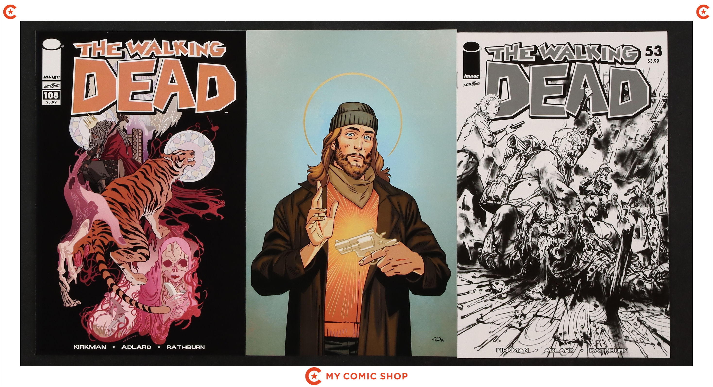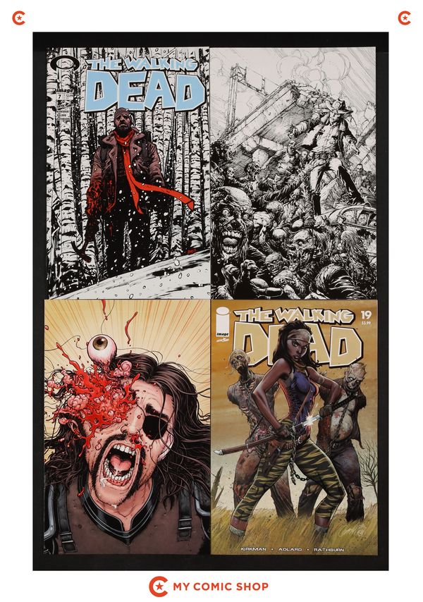 Issues 1D, 7A, 19A, 48B, 53C, 92B, and 108A of Walking Dead 15th Anniversary (2018 Image). Most will grade in the VF to NM range.