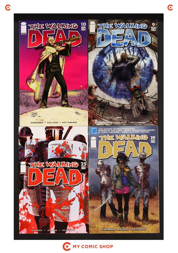 Issues 9, 10, 19, and 25 of Walking Dead (2003 Image). Most will grade in the FN range with #19 grading VG.