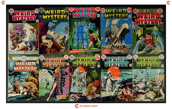 Issues 1-3, 5, 9-11, 13, 19, 21 of Weird Mystery Tales (1972). Most will grade in the FR/GD to VG range.