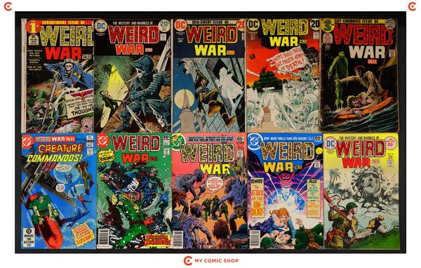 Issues 1, 3, 9, 10, 21, 34, 67, 69, 97, 109 of Weird War Tales (1971 DC). Most will grade in the FR/GD to FN/VF range.