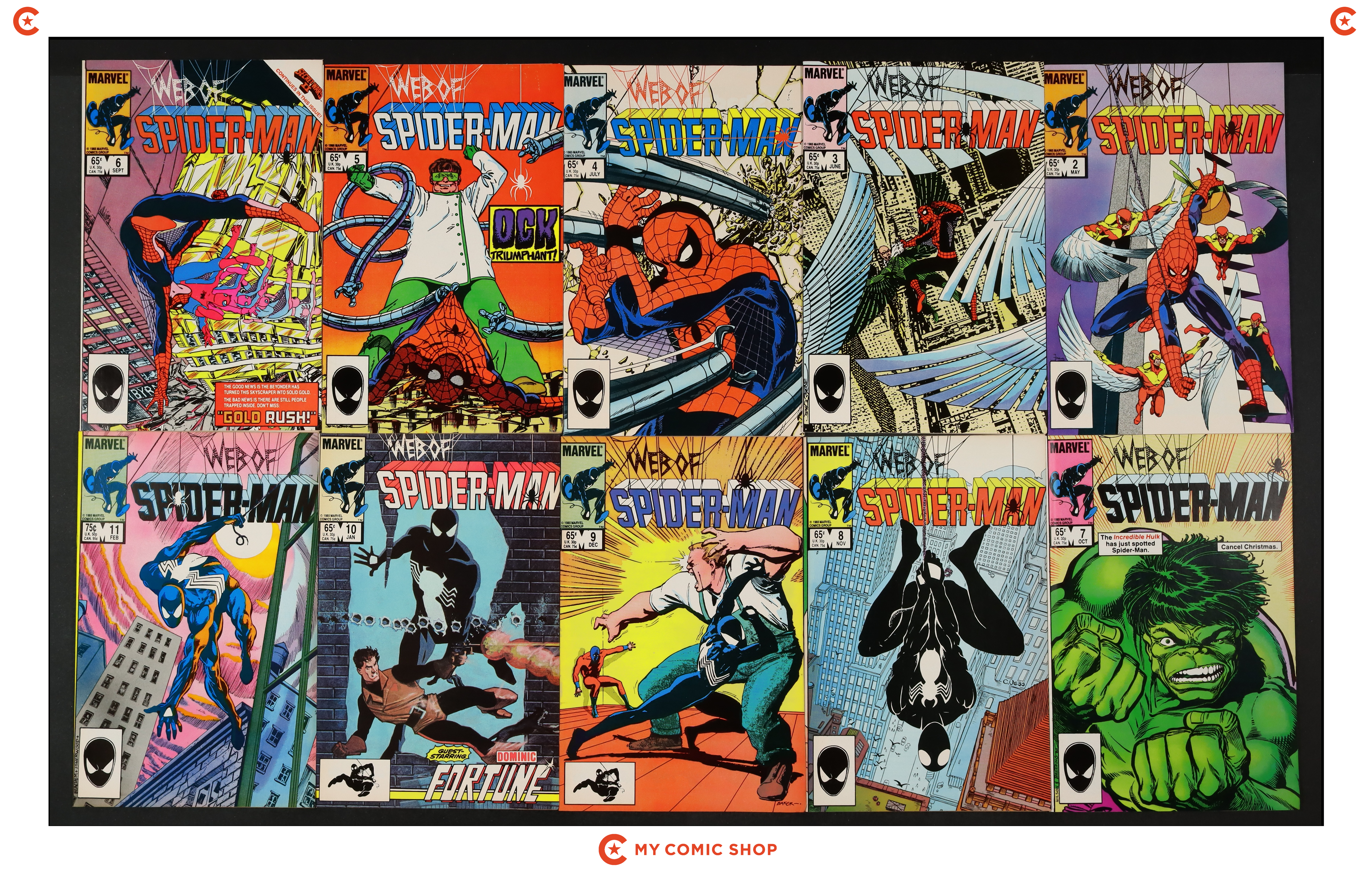 Issues 2-11 of Web of Spider-Man (1985 1st Series). Most will grade in the VF range with a couple grading FN.