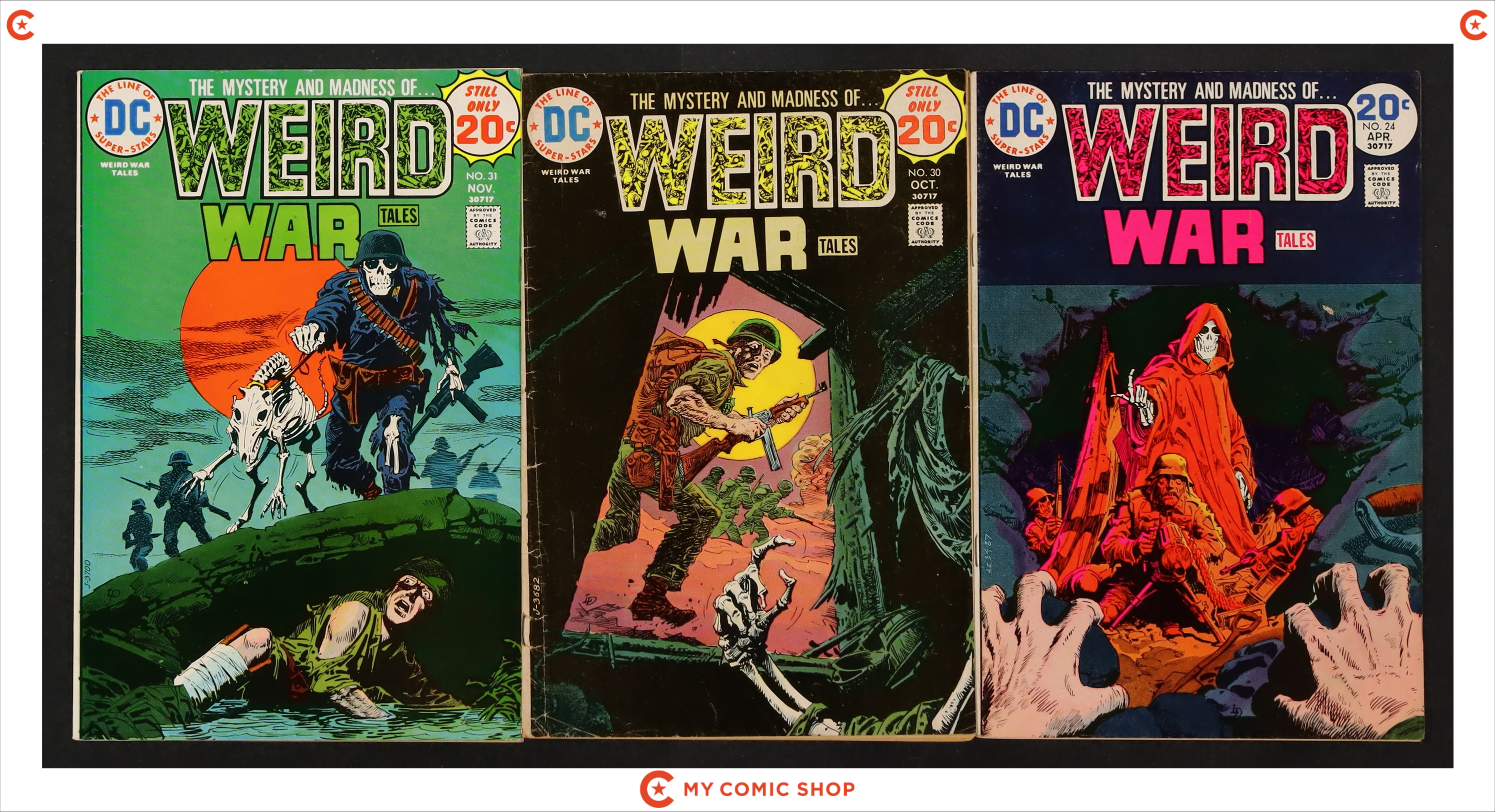 Issues 4, 5, 11, 12, 14, 22, 24, 30, and 31 of Weird War Tales (1971 DC). Most will grade in the FN range with a couple grading VG.