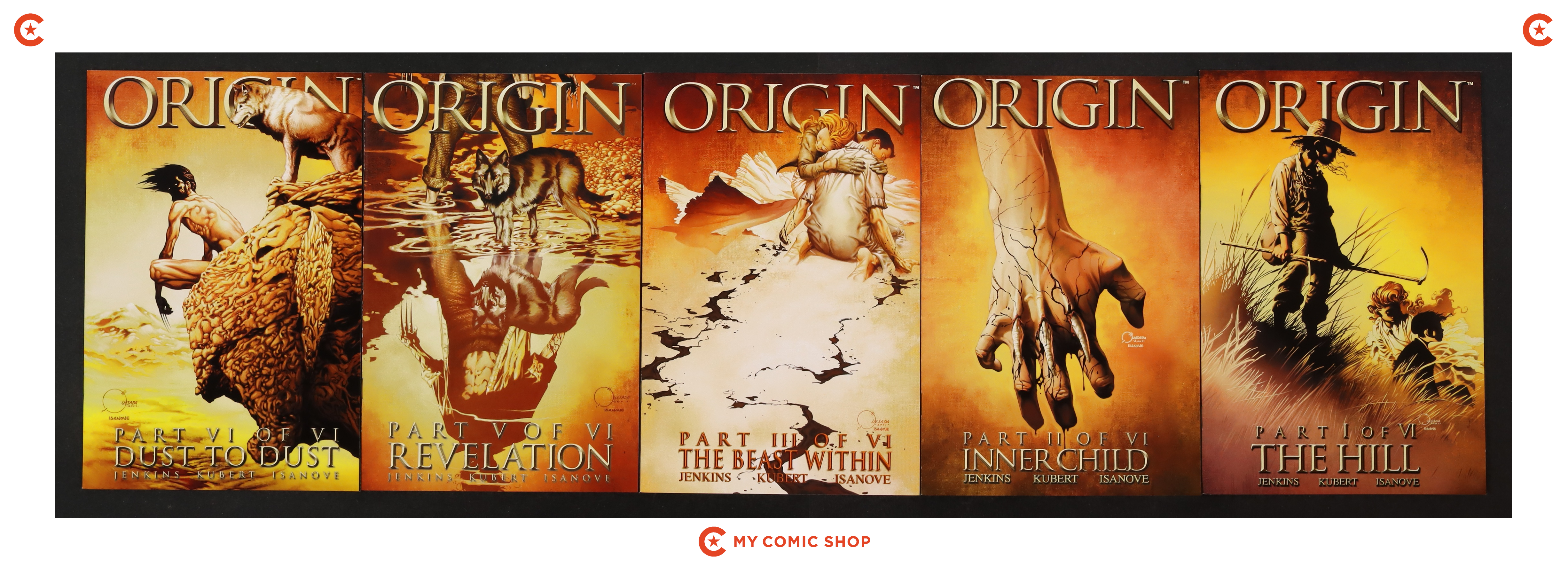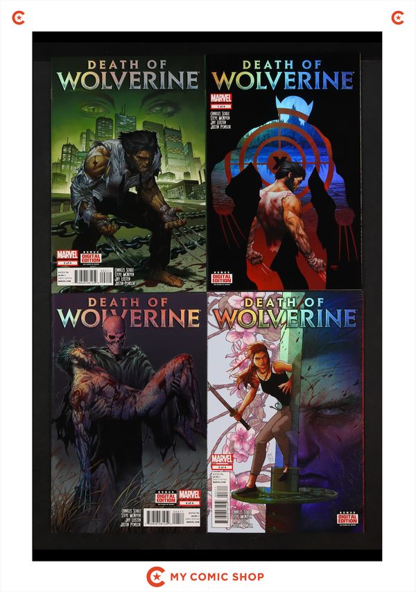 Issues 1, 2, 3, 5, 6 of Wolverine The Origin (2001), and issues 1A, 2A, 3A and 4A of Death of Wolverine (2014). Most will grade in the FN to VF range.
