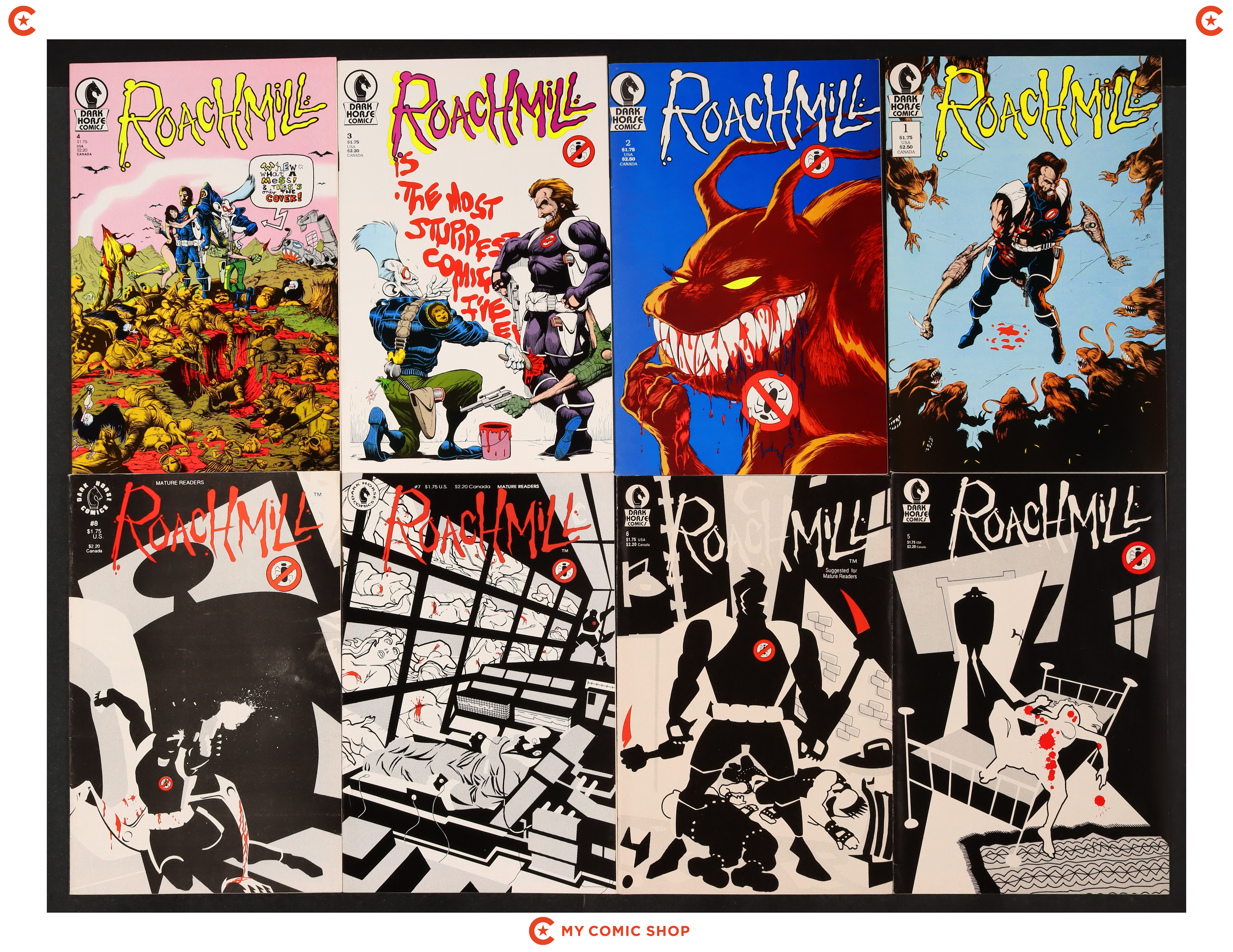 Issues 1-10 of Roachmill (1988 Dark Horse); and 1-1ST of Roachmill TPB (1988-1989 Dark Horse). Most will grade in the VF to FN+ range.