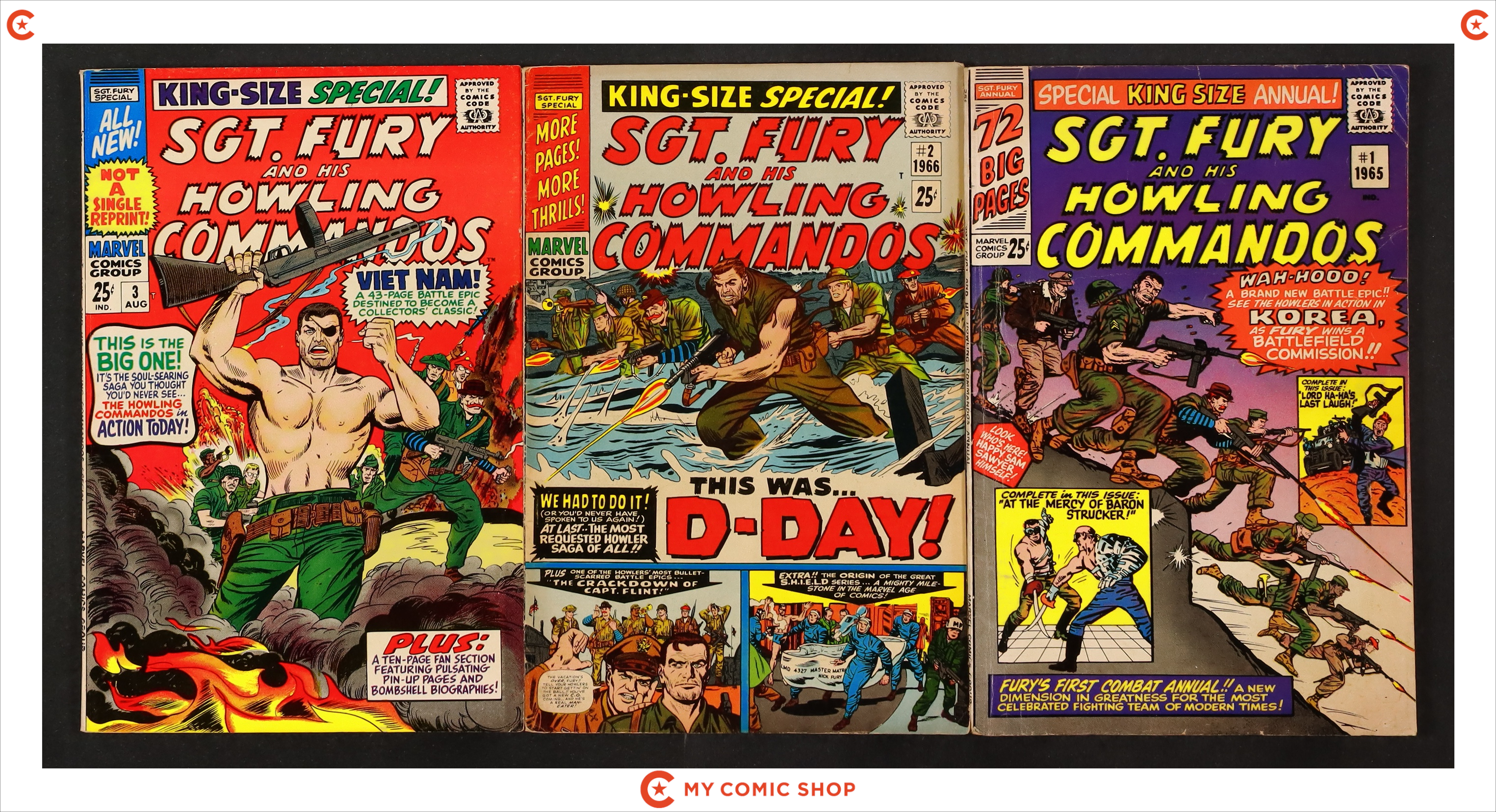 Issues 1, 2, 3 of Sgt. Fury (1963) Annual. Most will grade in the GD/VG to VG/FN range.