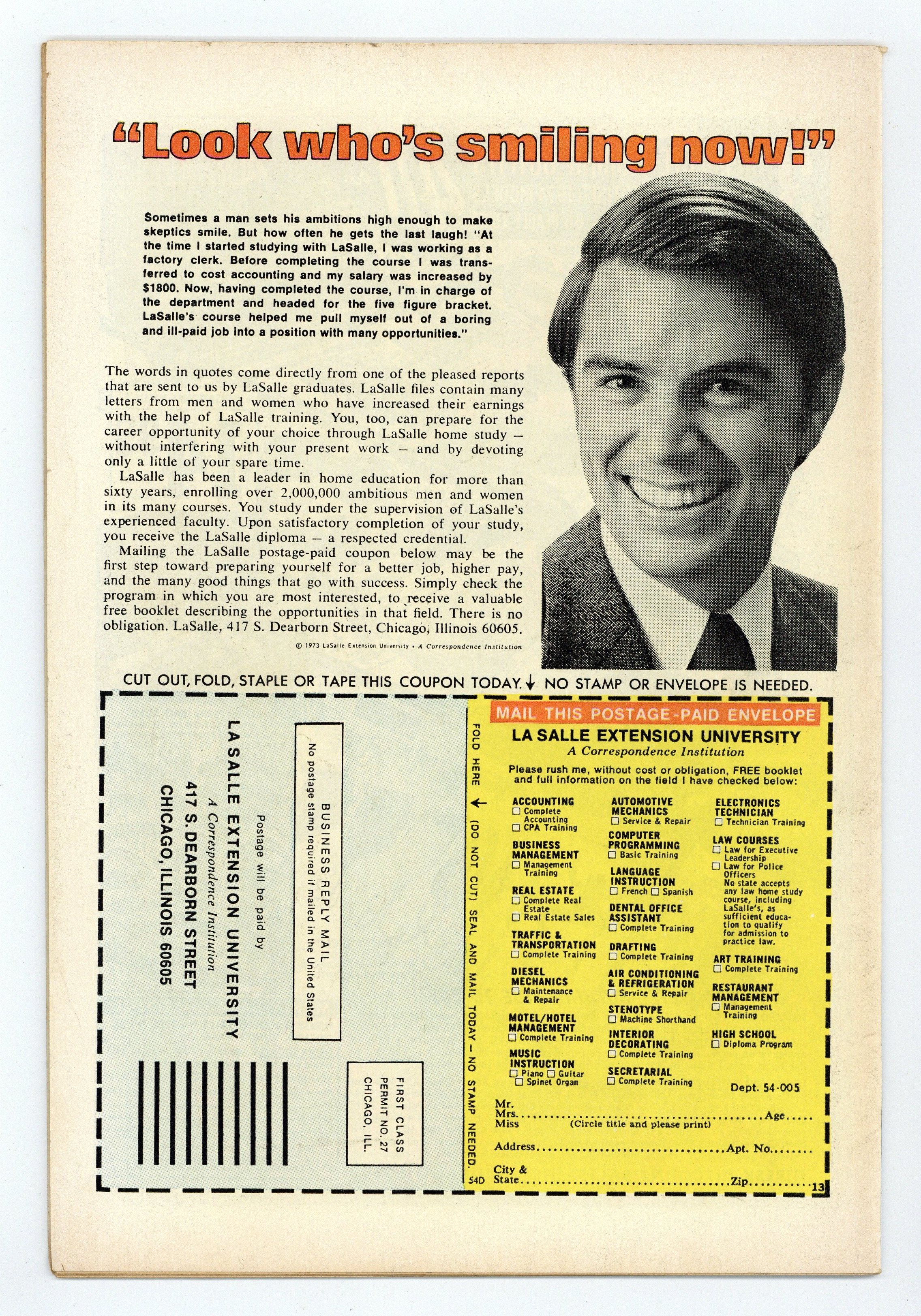 Starts Apr 27 Pizzazz Variant, has centerfold subscription offer for "Pizzazz" Magazine. The Green Goblin (Harry Osborn) returns in "He Who Laughs Last...!" Script by Len Wein, pencils by Ross Andru, inks by Tony DeZuniga. 36 pgs. Cover price $0.35.
