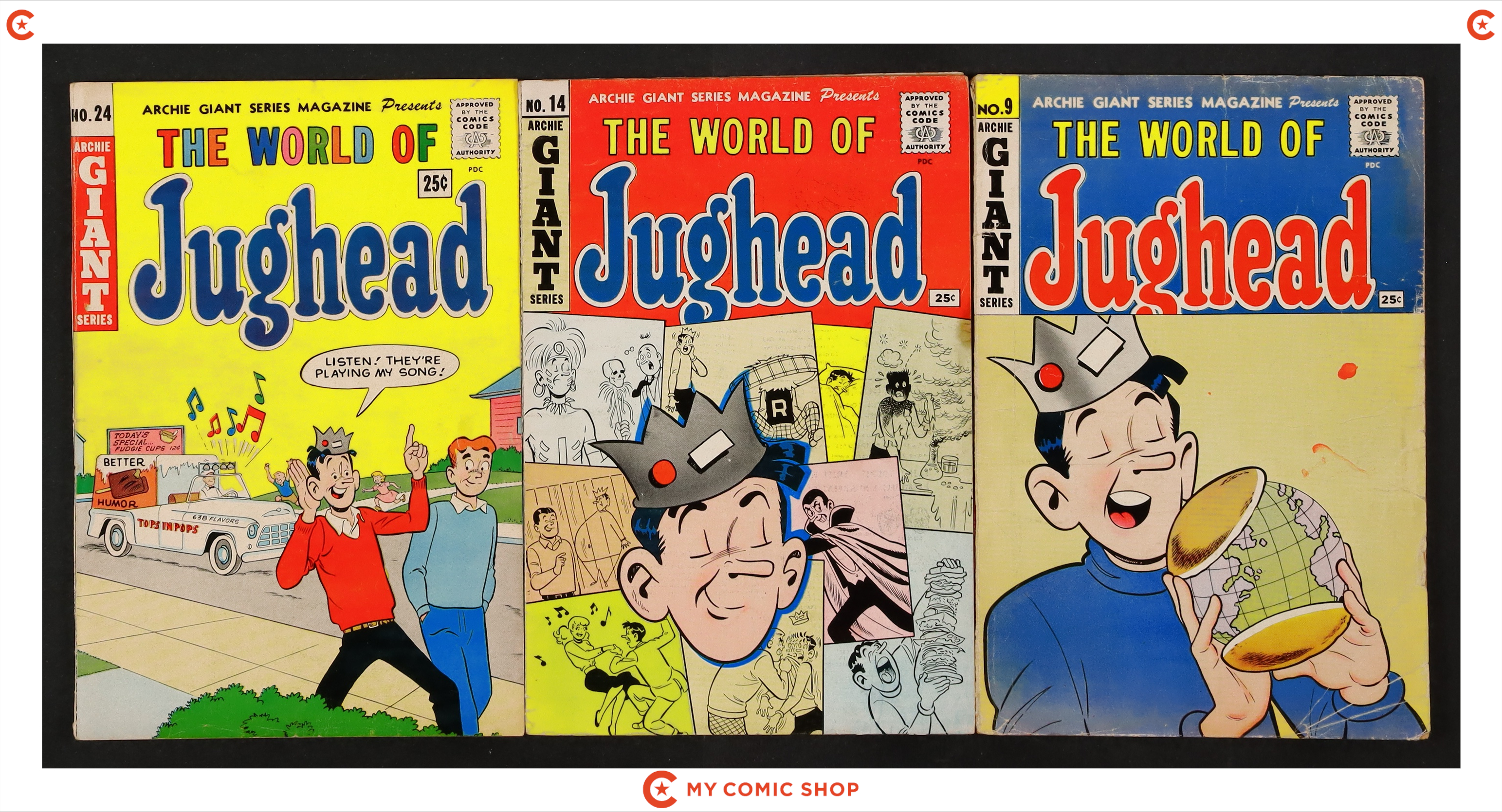 Issues 9, 14, and 24 of Archie Giant Series (1954 Archie). Most will grade in the VG range with #9 grading GD.