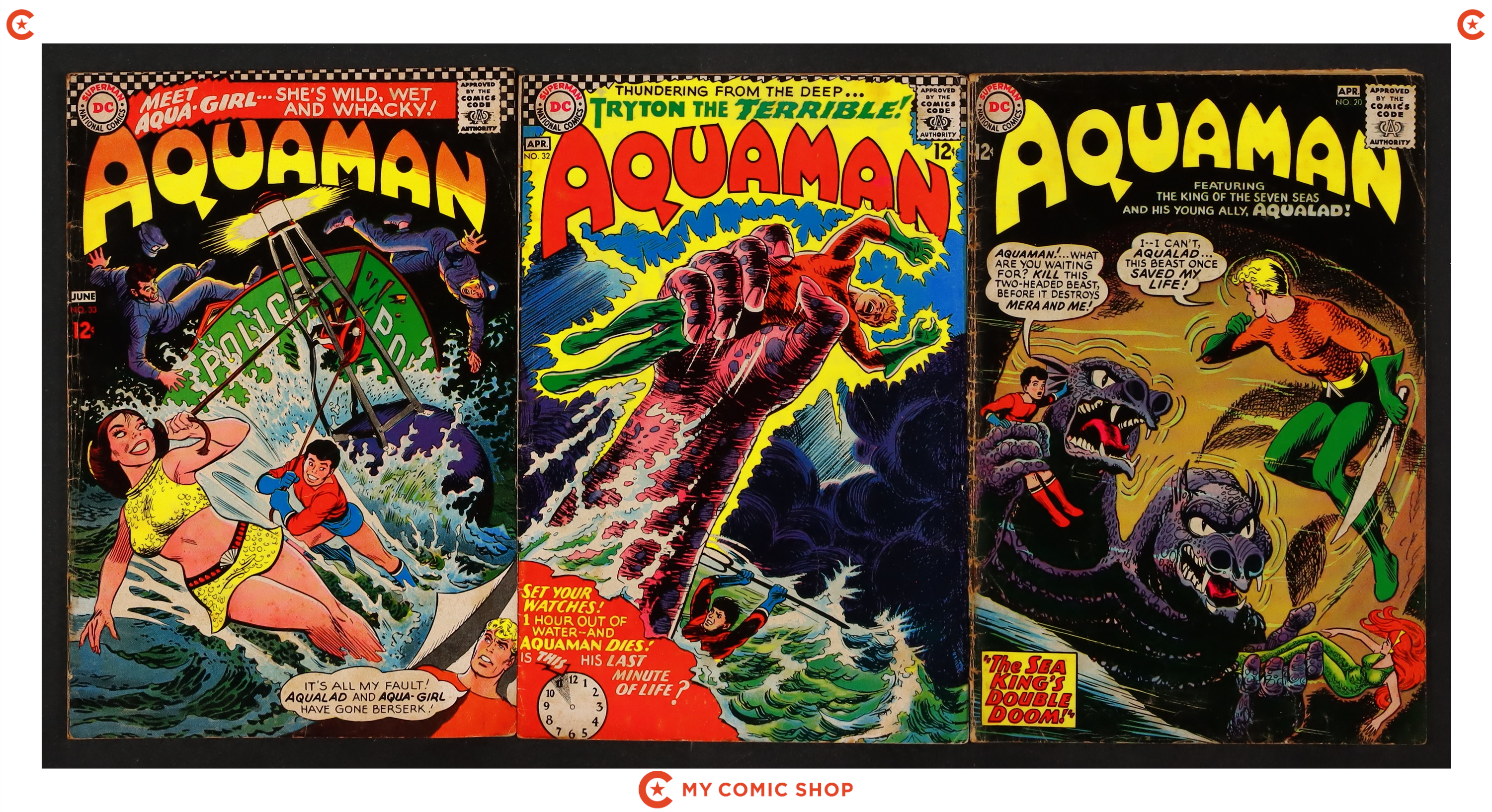 Issues 20, 32, and 33 of Aquaman (1962 1st Series). Most will grade in the GD to VG range.