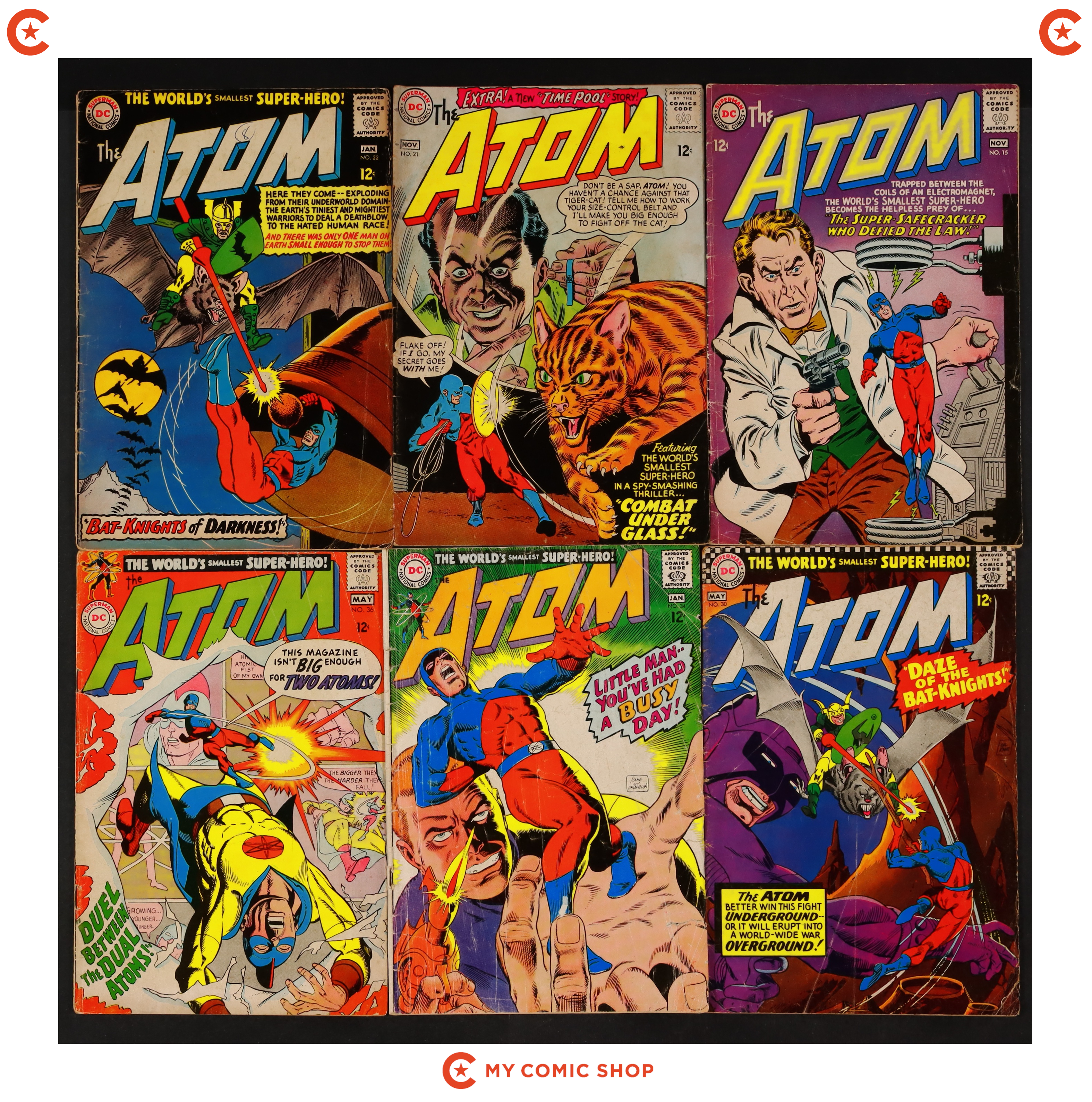 Issues 15, 21, 22, 30, 34, and 36 of Atom (1962). Most will grade in the FR/GD to GD/VG range.