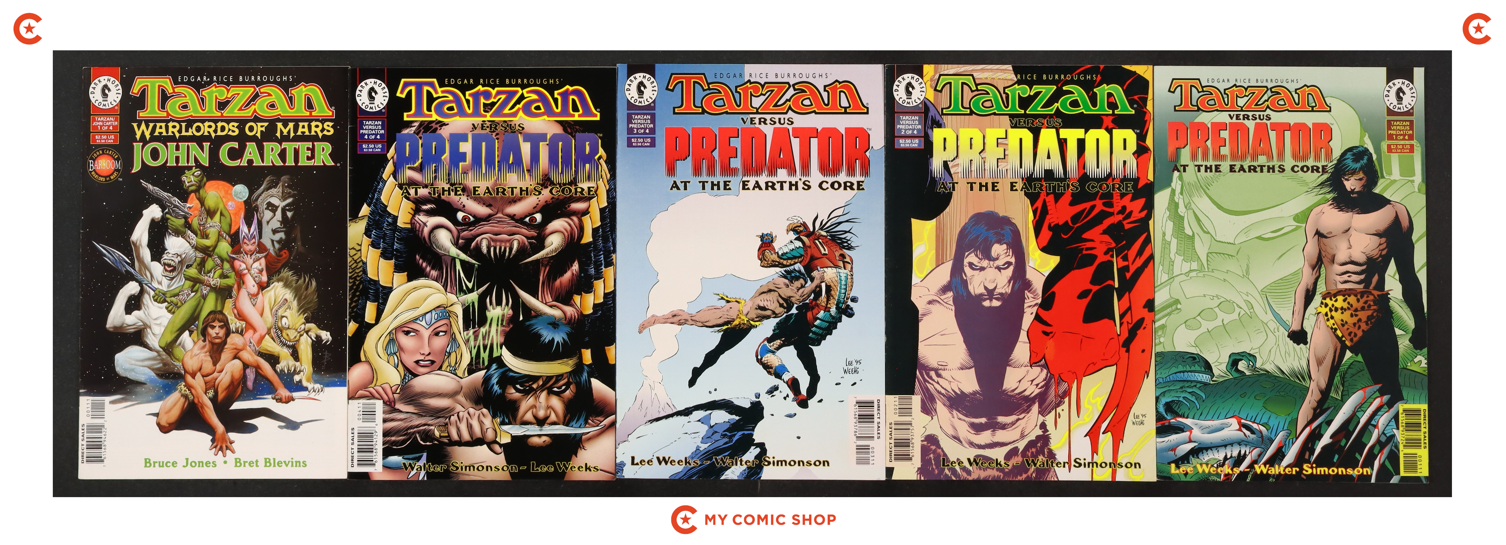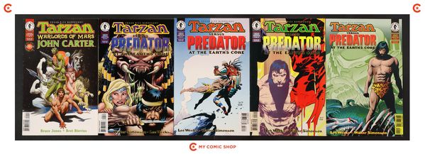 Issues 1-4 of Tarzan vs. Predator at the Earth's Core (1996); and 1 of Tarzan John Carter Warlords of Mars (1996). Most will grade in the FN range.