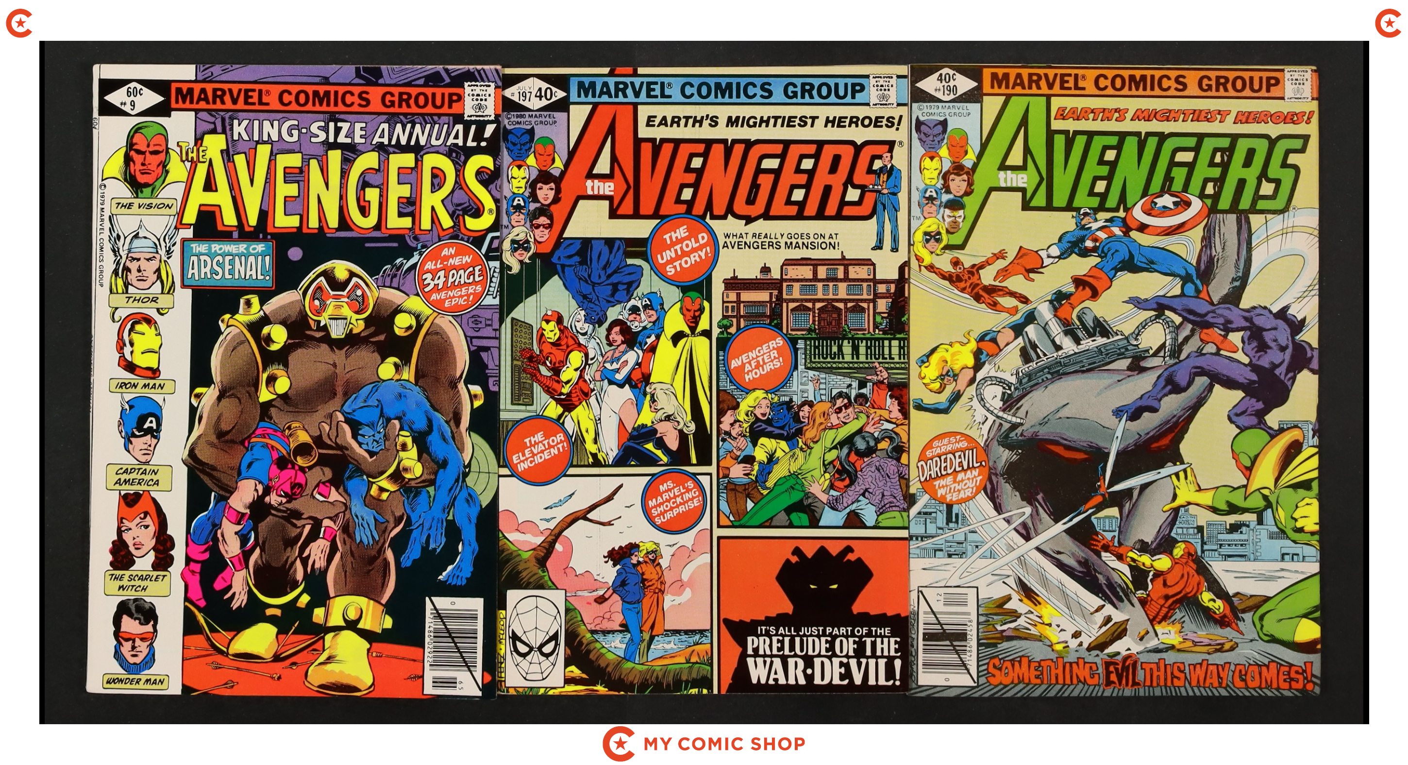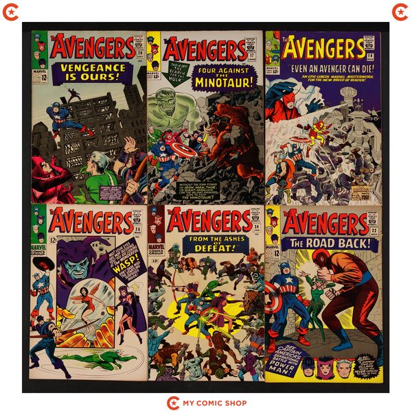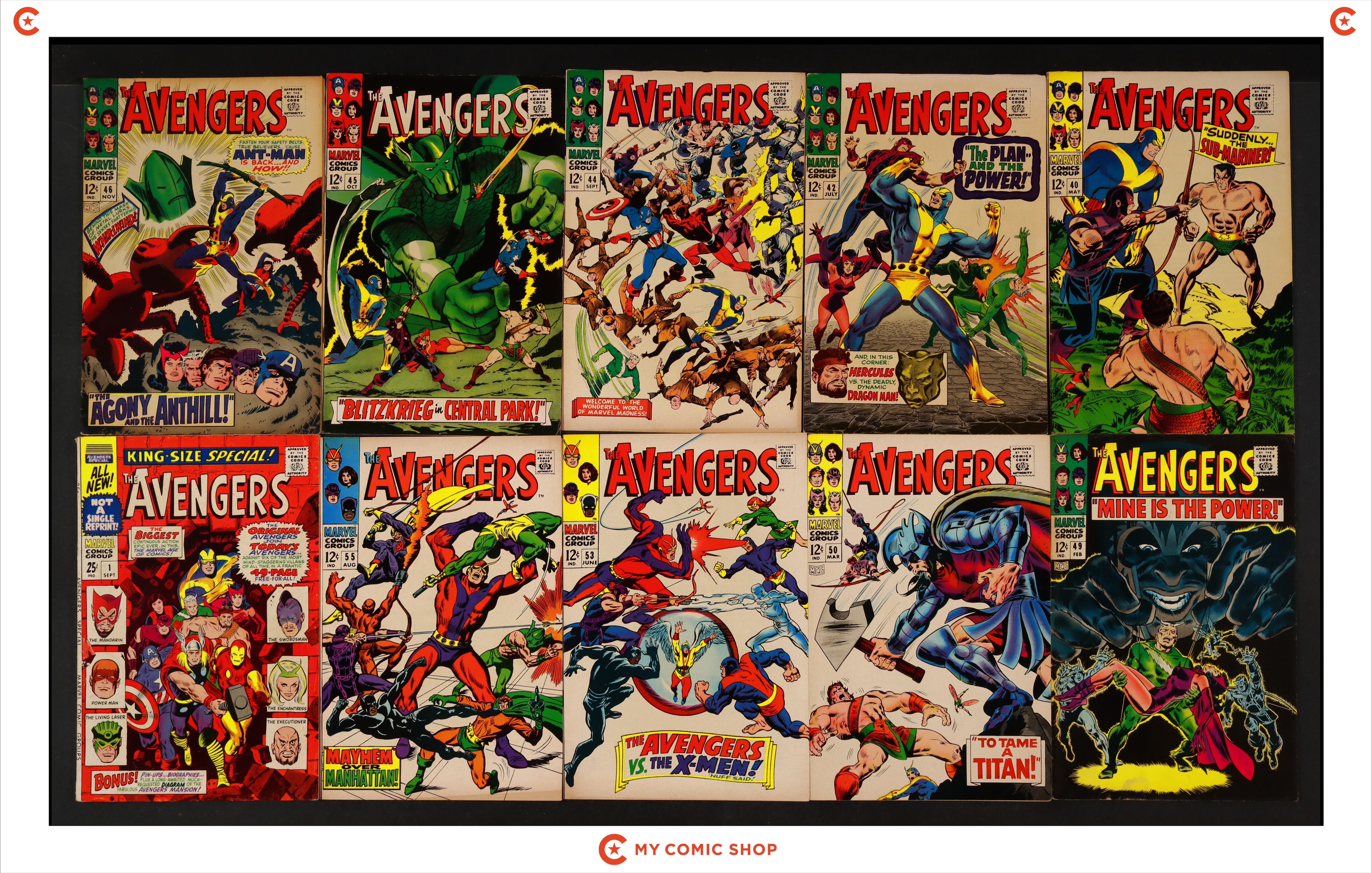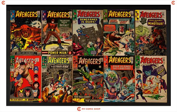 Issues 40, 42, 44-46, 49, 50, 53, and 55 of Avengers (1963 1st Series); and 1 of Avengers (1963 1st Series) Annual. Most will grade in the FN to VG range.