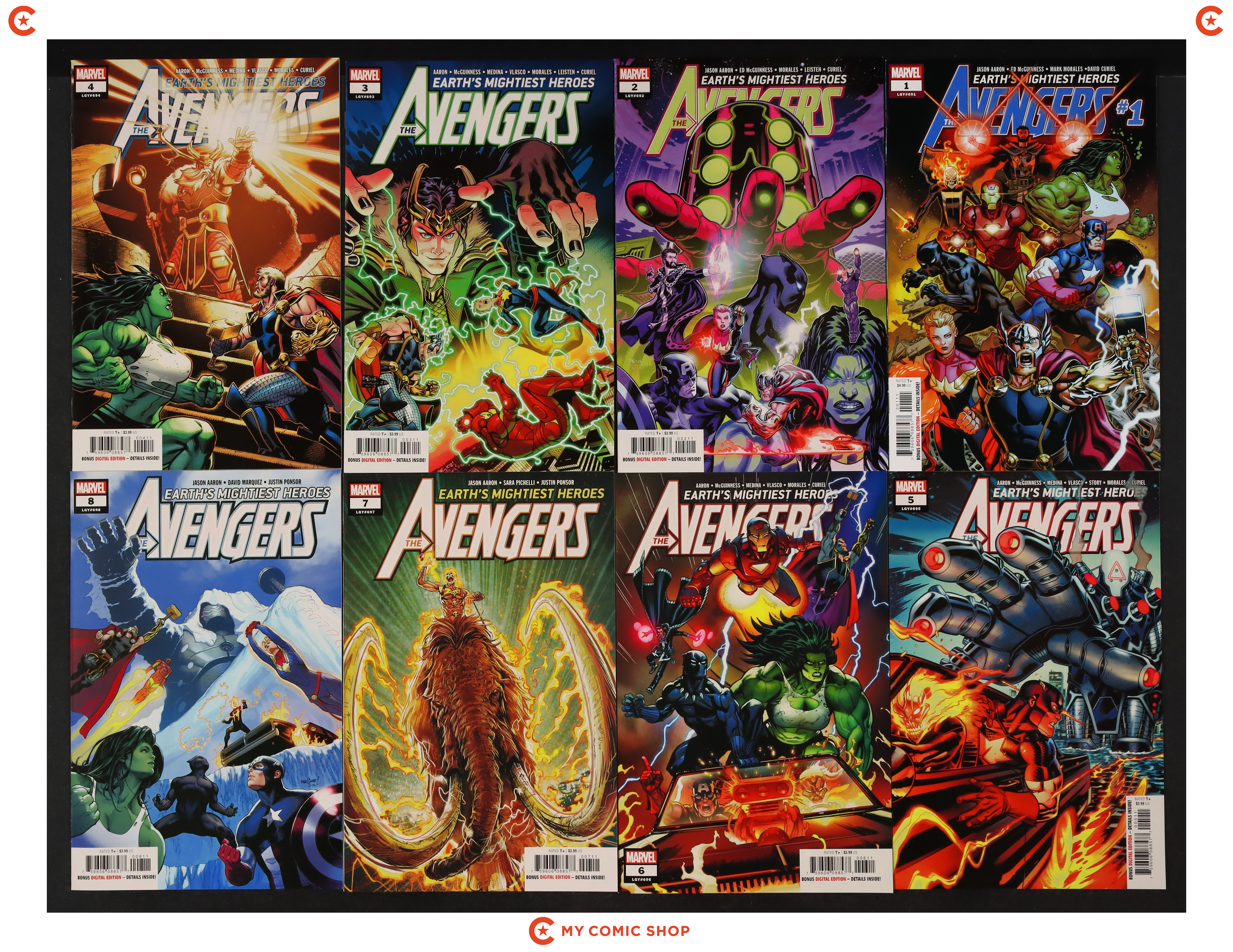 Issues 1A, 2A, 3A, 4A, 5A, 6A, 7A, 8A, 9A, 10A, and 11A of Avengers (2018 8th Series). Most will grade in the