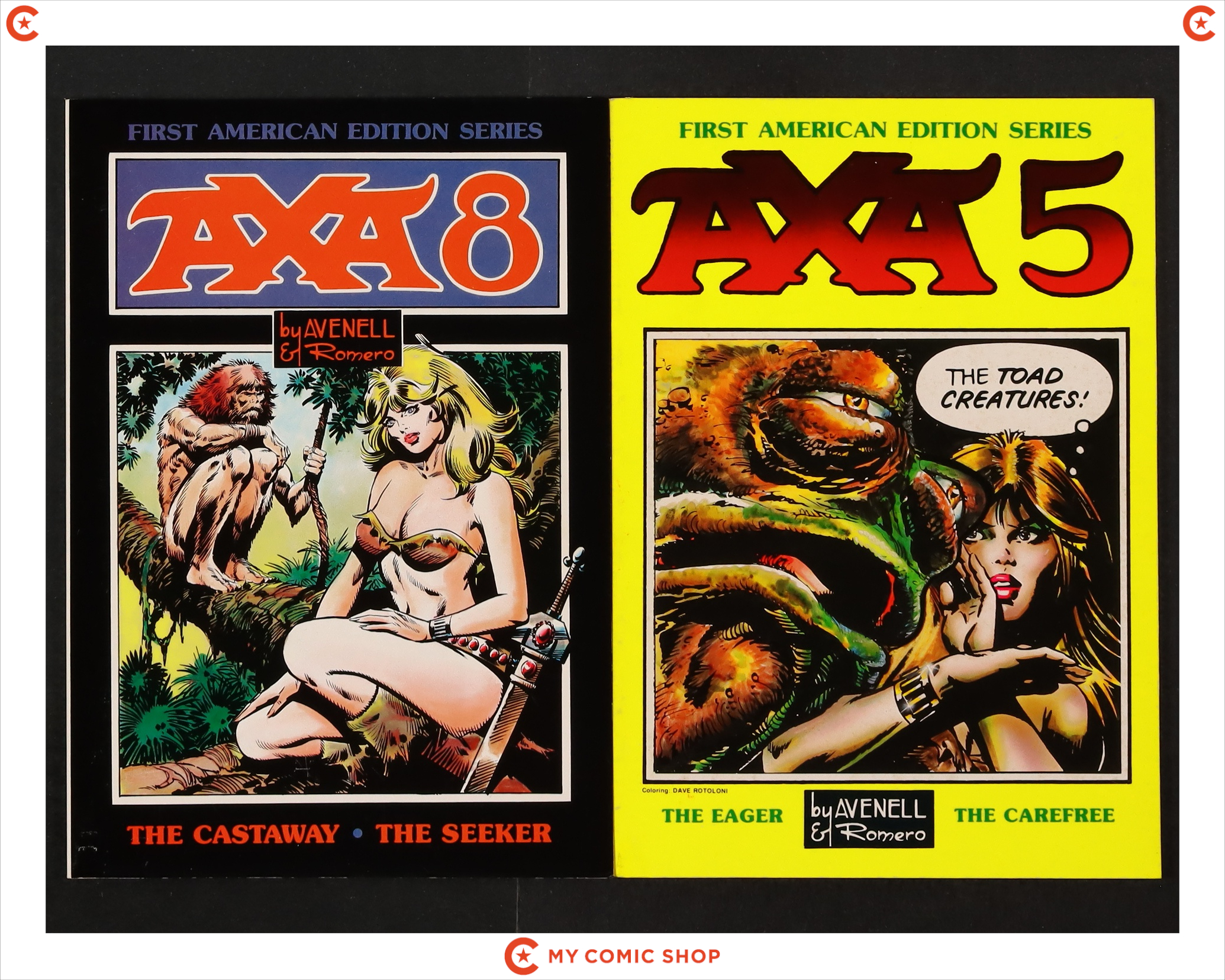 Issues 5-1ST, and 8-1ST of Axa TPB (1983-1988 Eclipse) First American Edition. Most will grade in the FN to VF range.