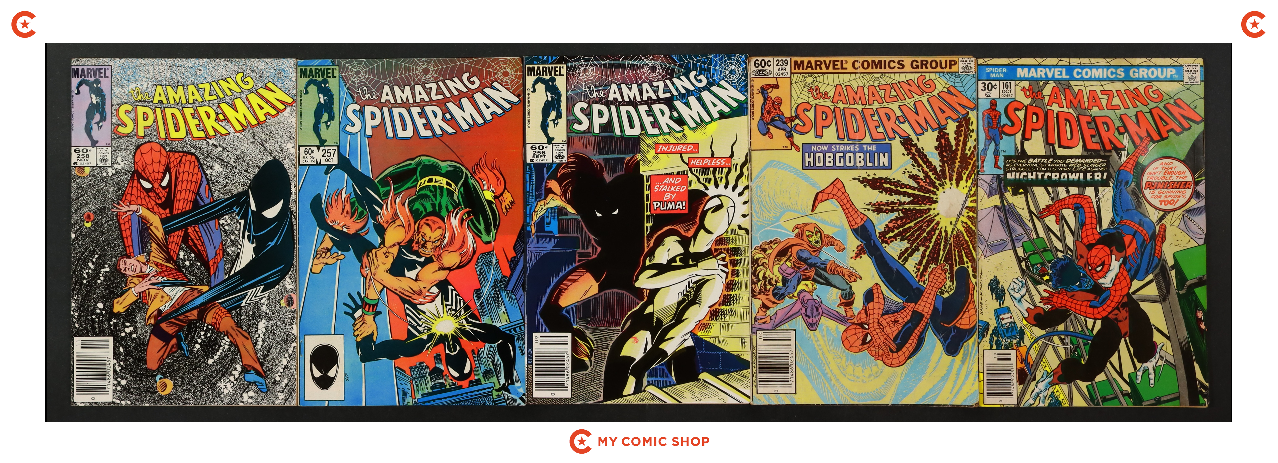 Issues 161, 239N, 256N, 257, 258N of Amazing Spider-Man (1963 1st Series). Most will grade in the FR/GD to VG/FN range.