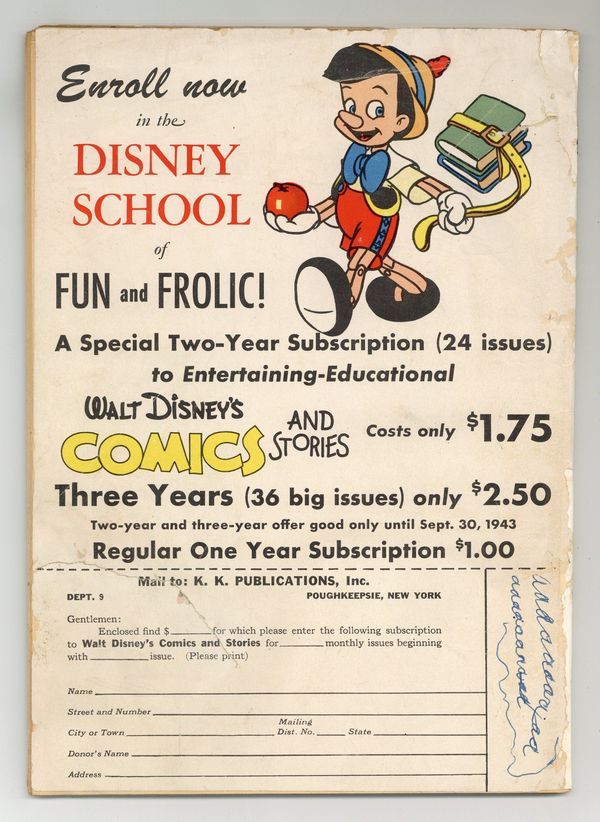 Tags: Disney Ducks & MicePublished Sep 1943 by Dell/Gold Key.Walt Disney's Comics and Stories (1940 Dell/Gold Key/Gladstone) 36 FR 1.0 (R)