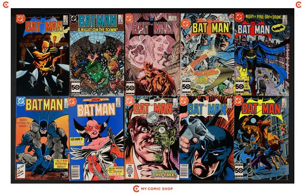 Issues 485, 500B, 502, 529, 531B, 532A, 533, 534, 535A, 536-538, and 542-544 of Batman (1940). Most will grade in the VF range with a couple grading FN.