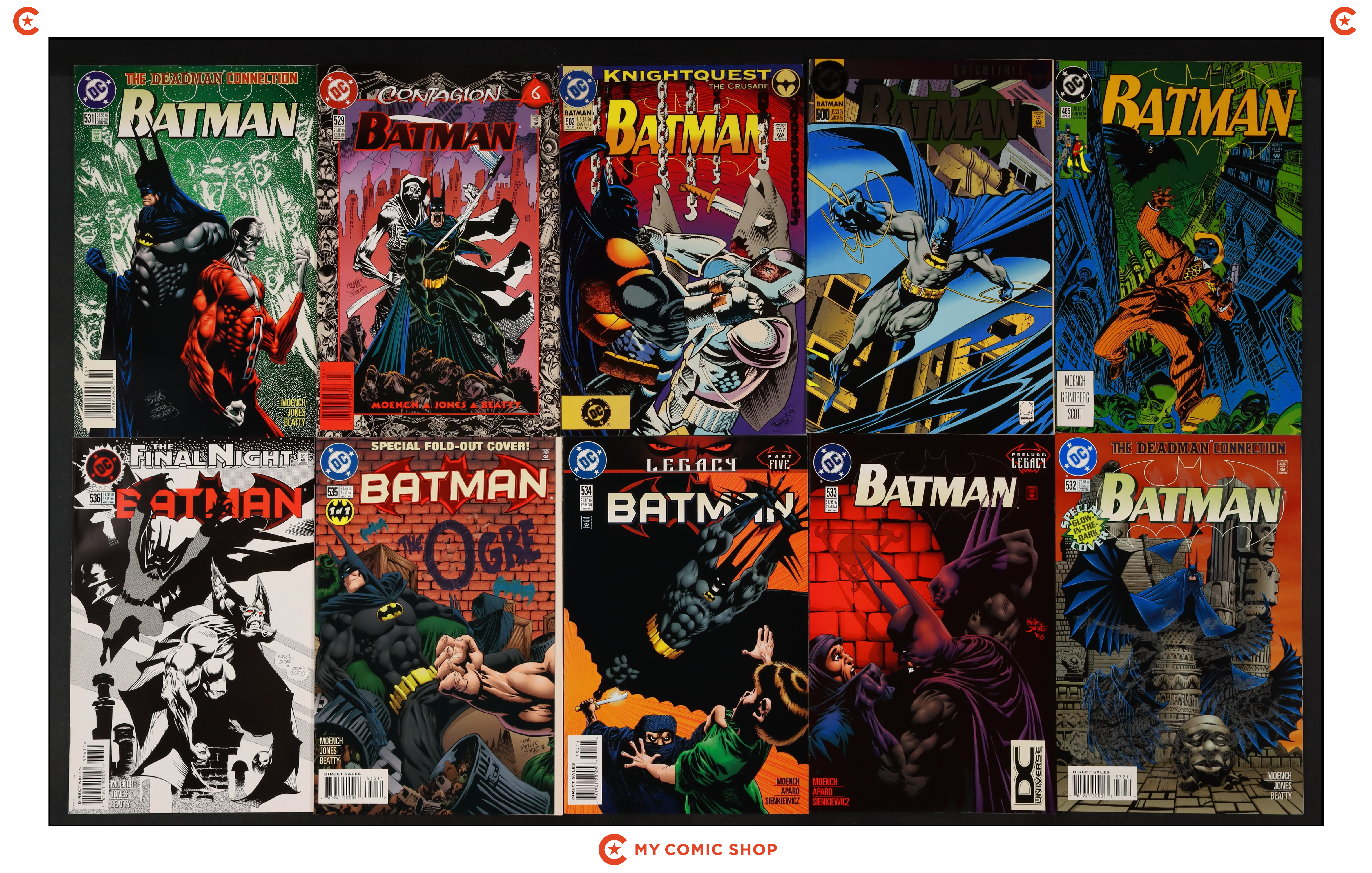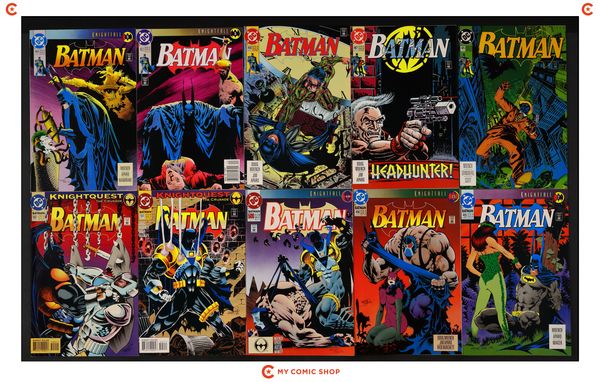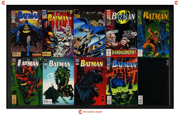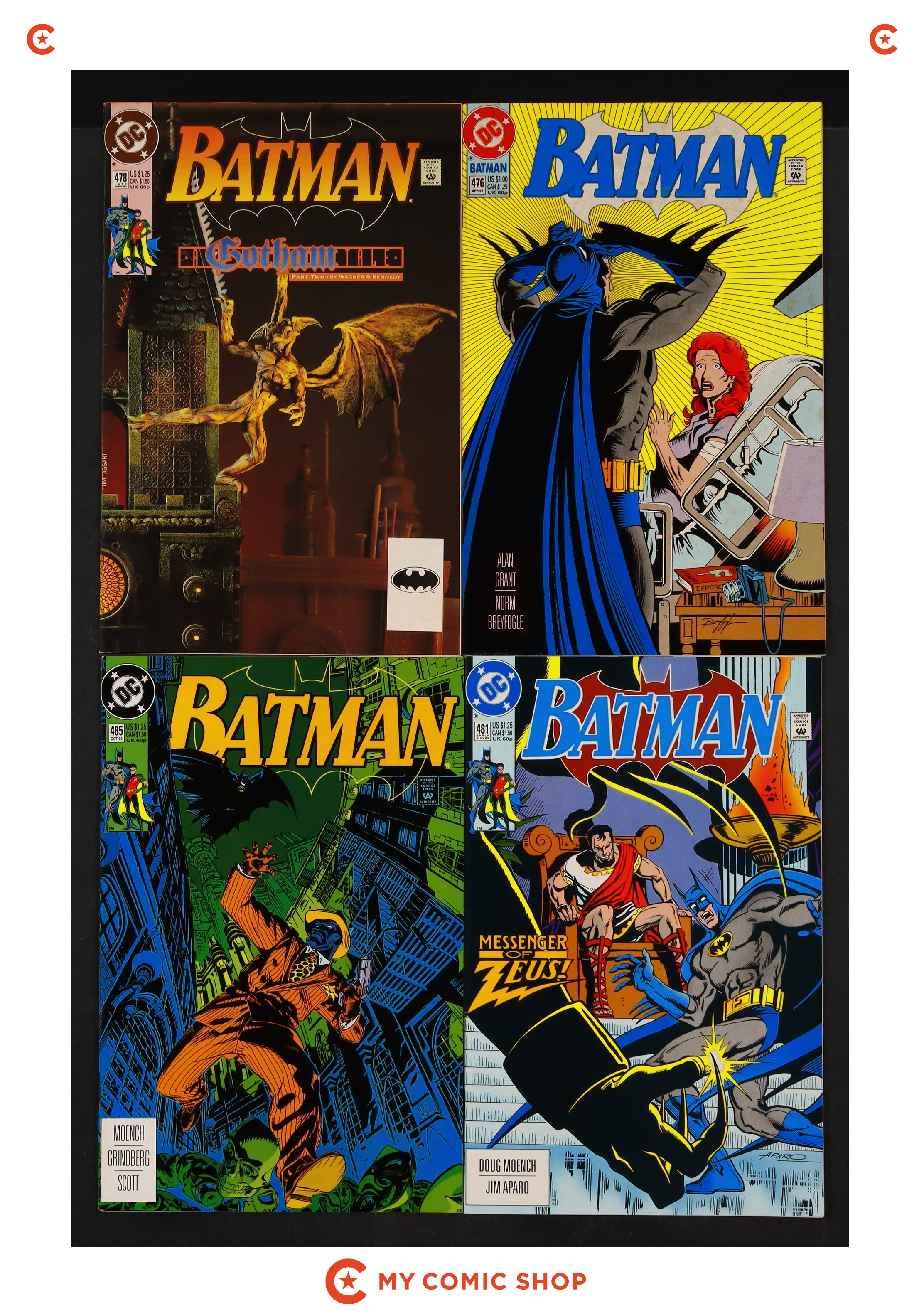 Issues 483, 485, 487, 488, 490, 492A, 493-496, 498, 499, 500B, 501, and 502 of Batman (1940); and 1 of Batman Run Riddler Run (1992). Most will grade in the VF range with a couple grading FN.