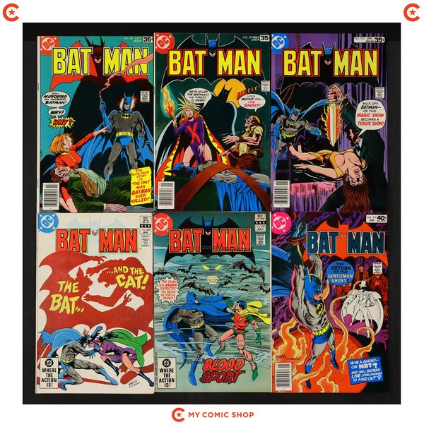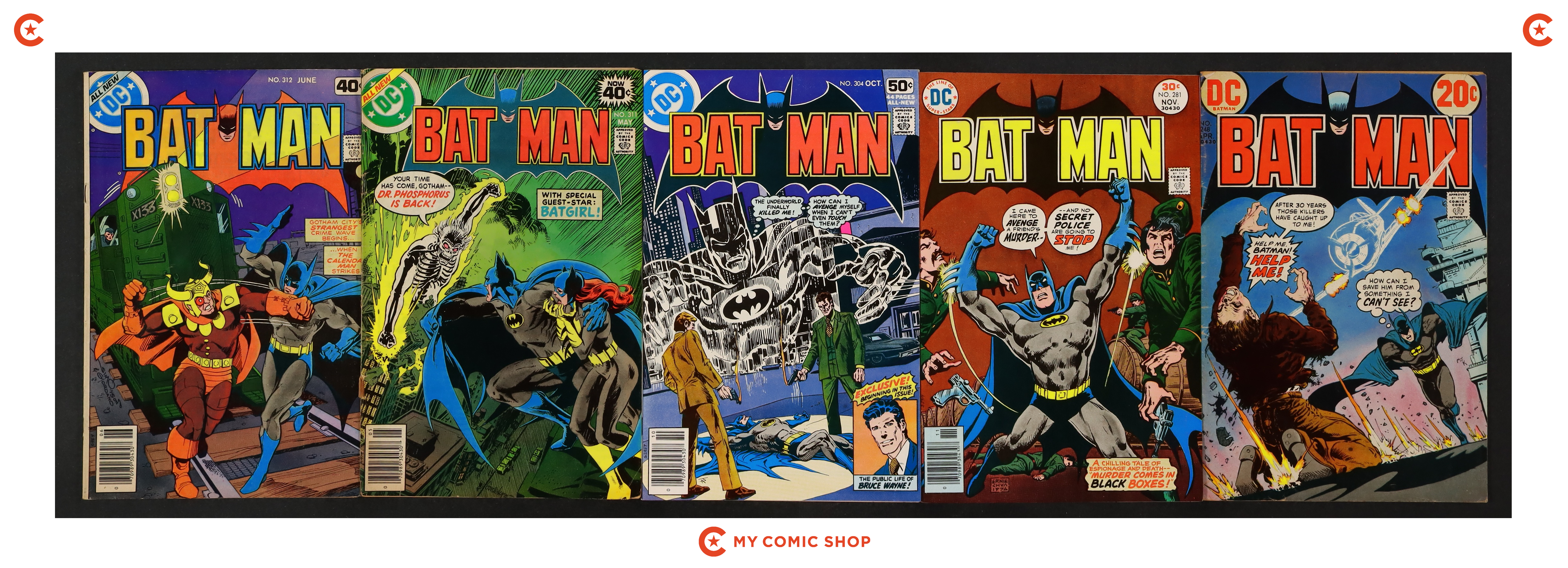 Issues 248, 281, 304, 311, and 312 of Batman (1940). Most will grade in the VG to FN/VF range with #311 grading GD-.