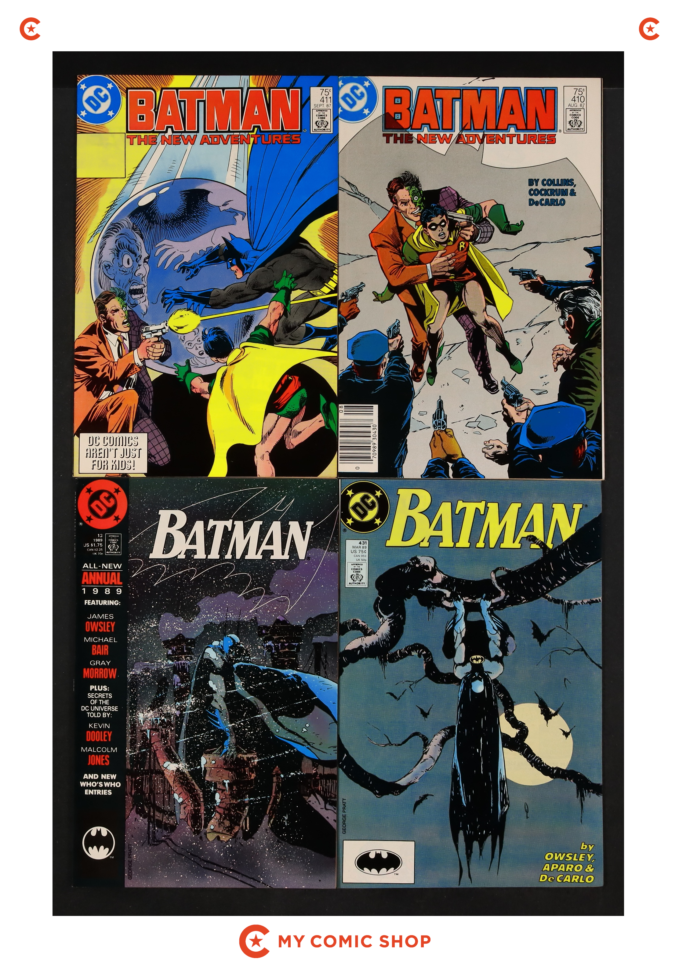 Issues 413, 415, 421, 424, 425, 433-435, 438, 440, 443, 446, and 458 of Batman (1940).; and 4 of Saga of Ra's Al Ghul (1988). Most will grade in the VF range with a couple grading closer to FN.