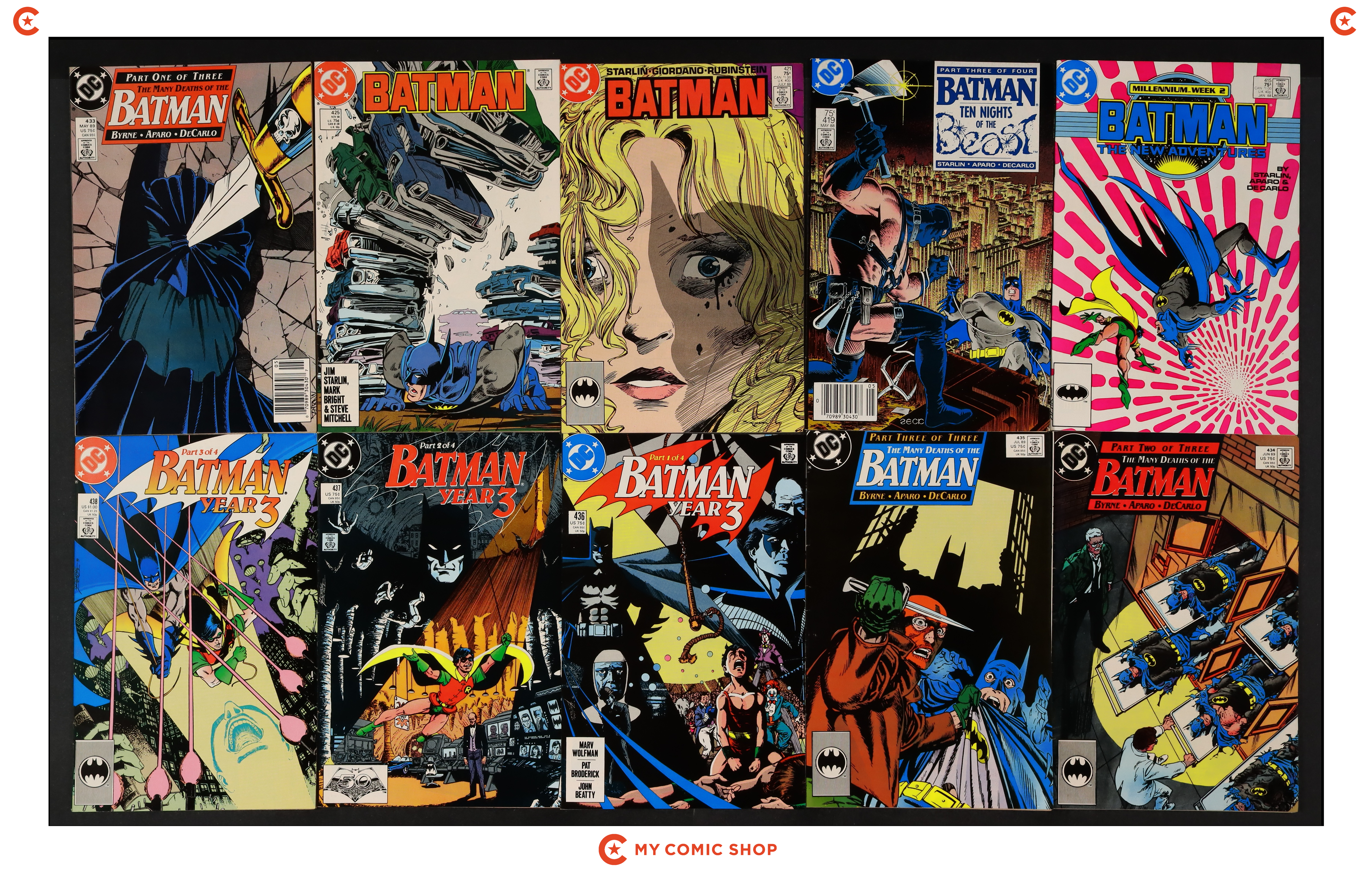 Issues 485, 487, 490, 493-495, 498, 500U, 501-505, 507, 510, and 513 of Batman (1940). Most will grade in the VF to FN range.