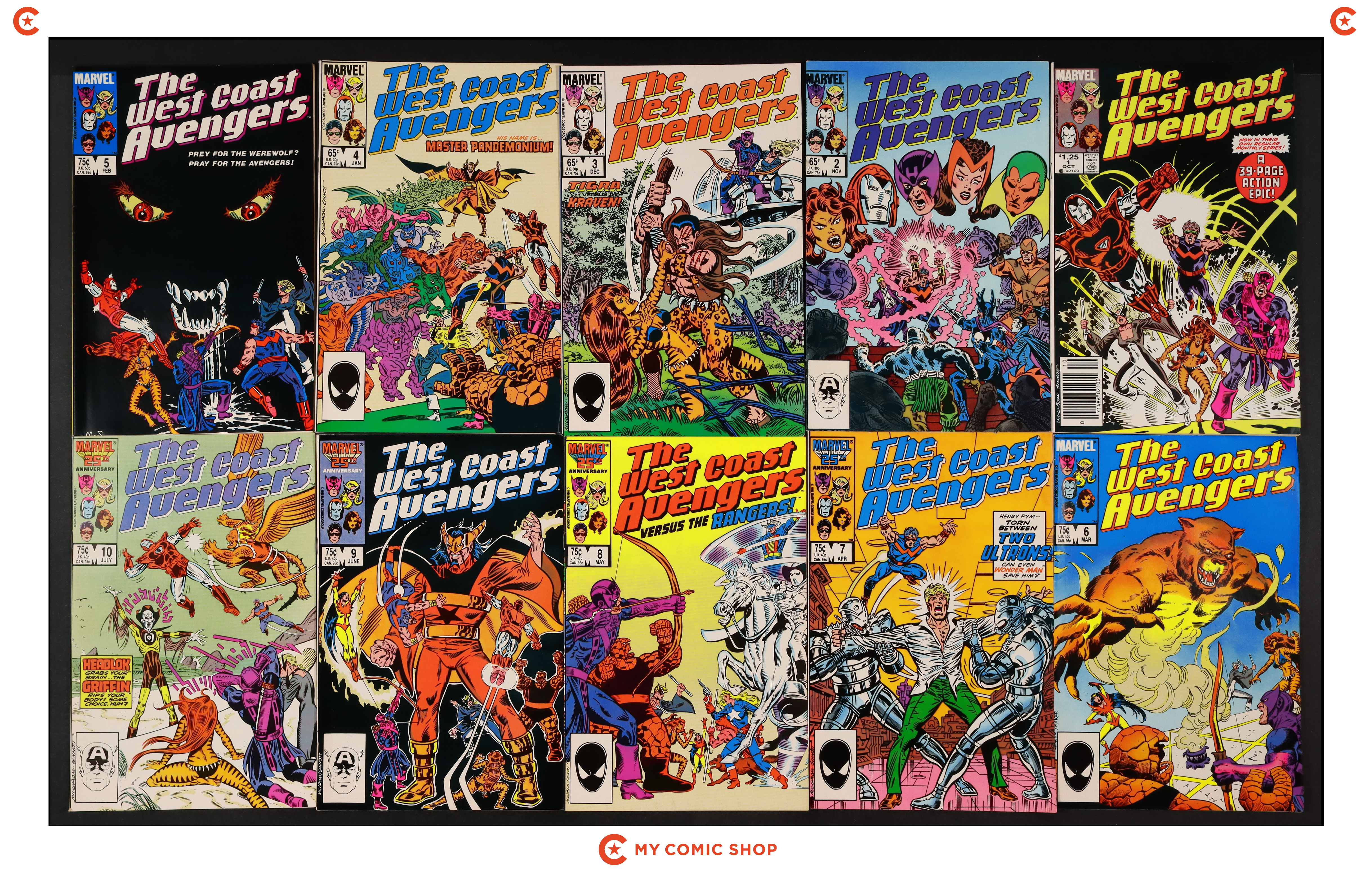 Issues 1N, 2-7, 8D, 9-12, 13D of Avengers West Coast (1985). Most will grade in the VG/FN to FN/VF range.
