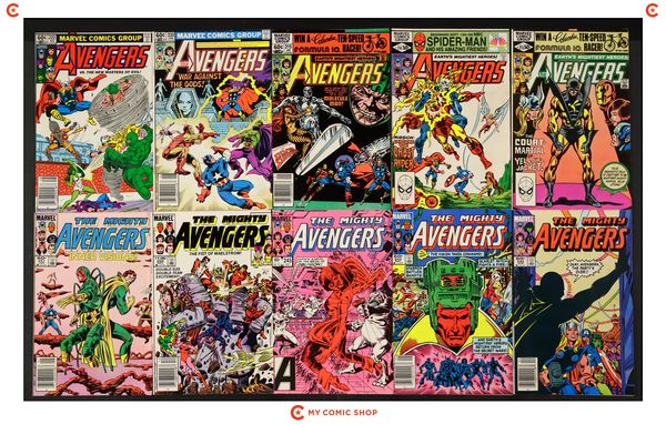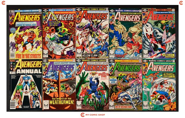 Issues 261-263, 265, 270-275 of Avengers (1963 1st Series), issue 15 of Avengers (1963 1st Series) Annual, and issue 1 of Avengers West Coast (1986) Annual. Most will grade in the VG to FN range.