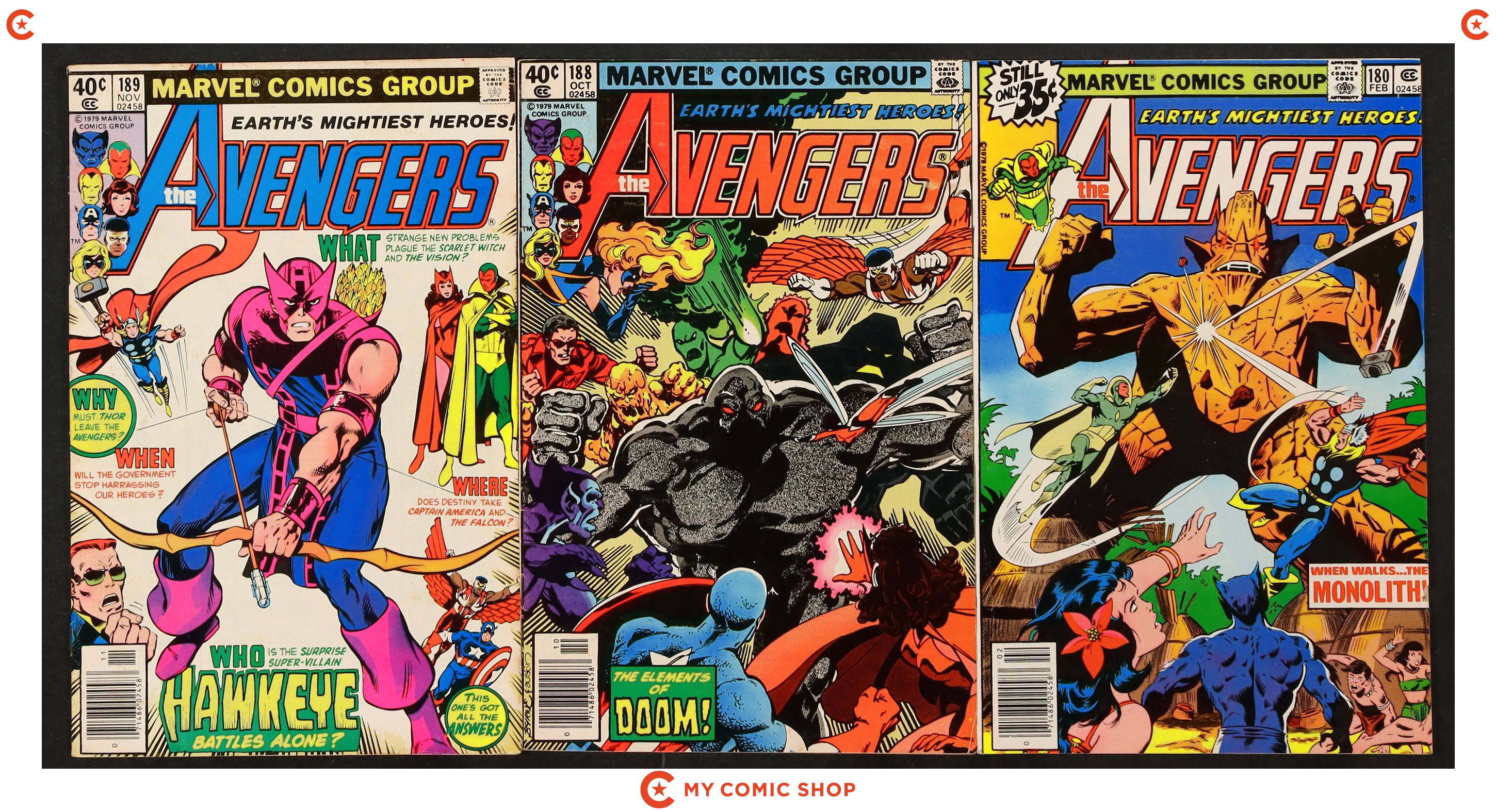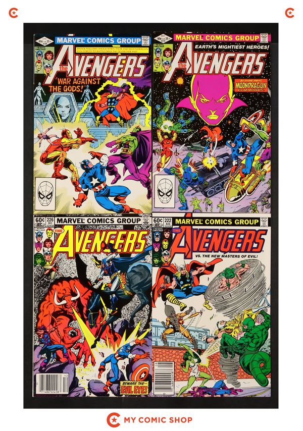 Issues 213, 241, 256, 273, 280, 281, 282 of Avengers (1963 1st Series), issues 340D, 346, 350, 400 of Captain America (1968 1st Series), and issue 279 of Iron Man (1968 1st Series). Most will grade in the FN to VF range with #273 of Avengers (1963 1st Series) grading GD.