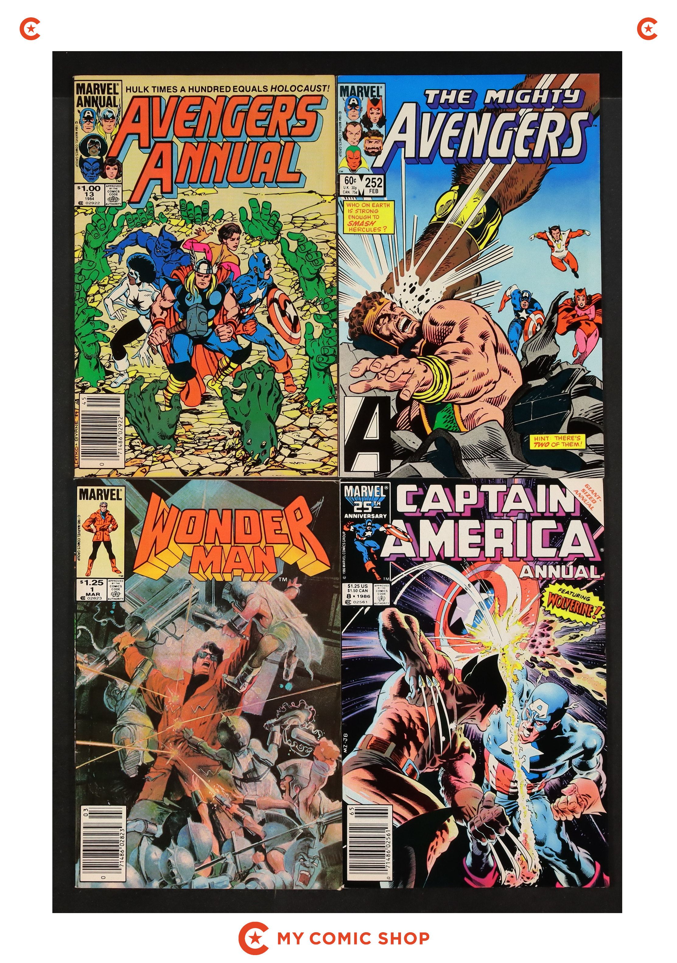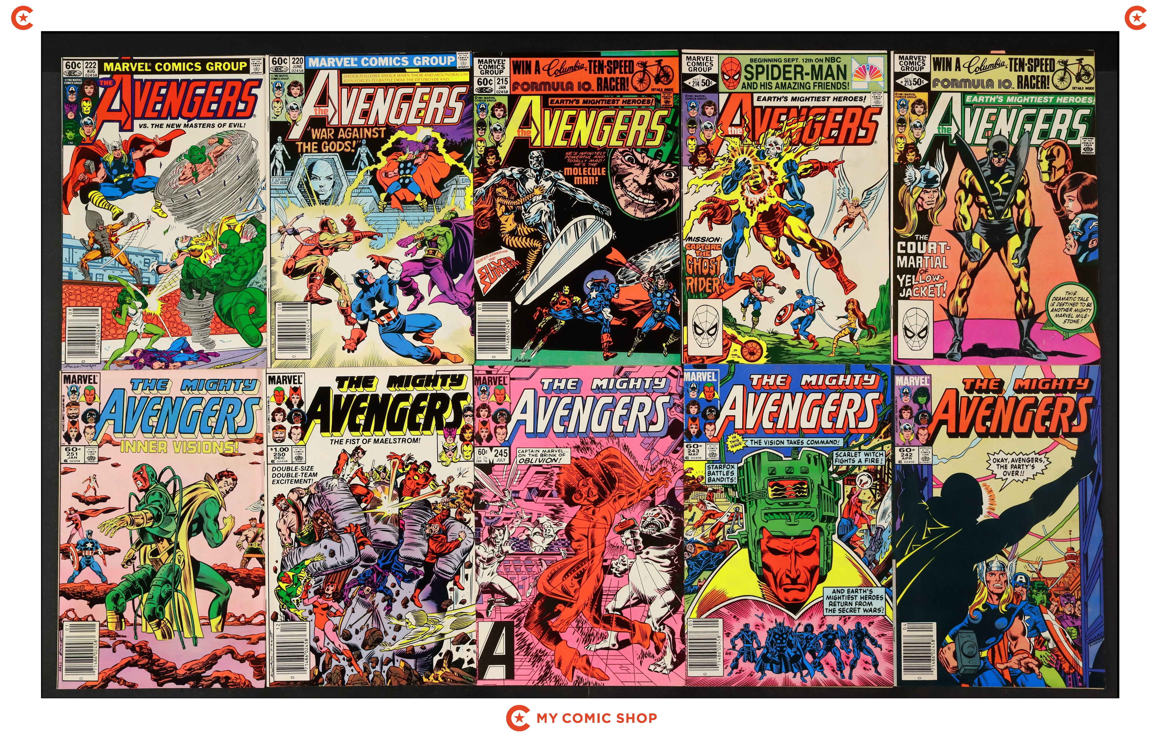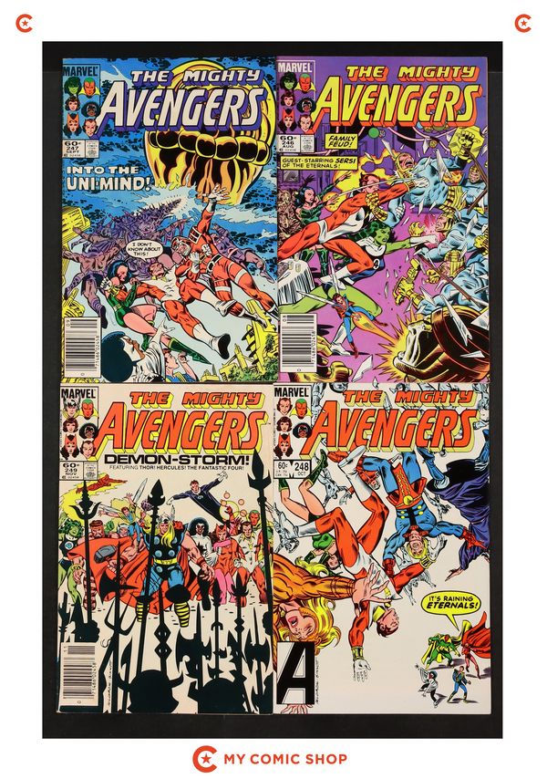 Issues 213, 214D, 215N, 220N, 222N, 242, 243, 245, 250, 251N, 252; Annual 13 of Avengers (1963 1st Series). Captain America (1968 1st Series) Annual 8N; and Wonder Man (1986 Marvel) One-Shot 1N. Most will grade in the VG to FN- range.