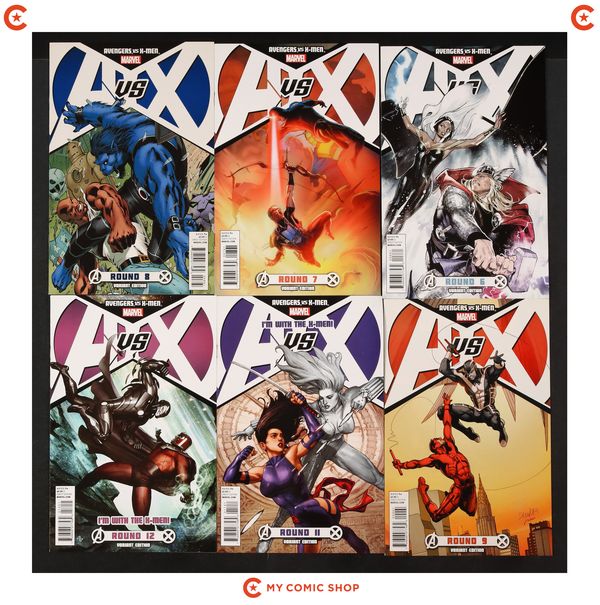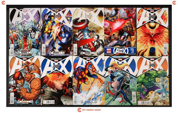 Issues 0A, 1A, 2A, 3A, 4A, 5A, 6A, 7A, 8A, 9A, 10A, 11A, and 12A of Avengers vs. X-Men (2012 Marvel). Most will grade in the VF to NM range with #0A grading FN.