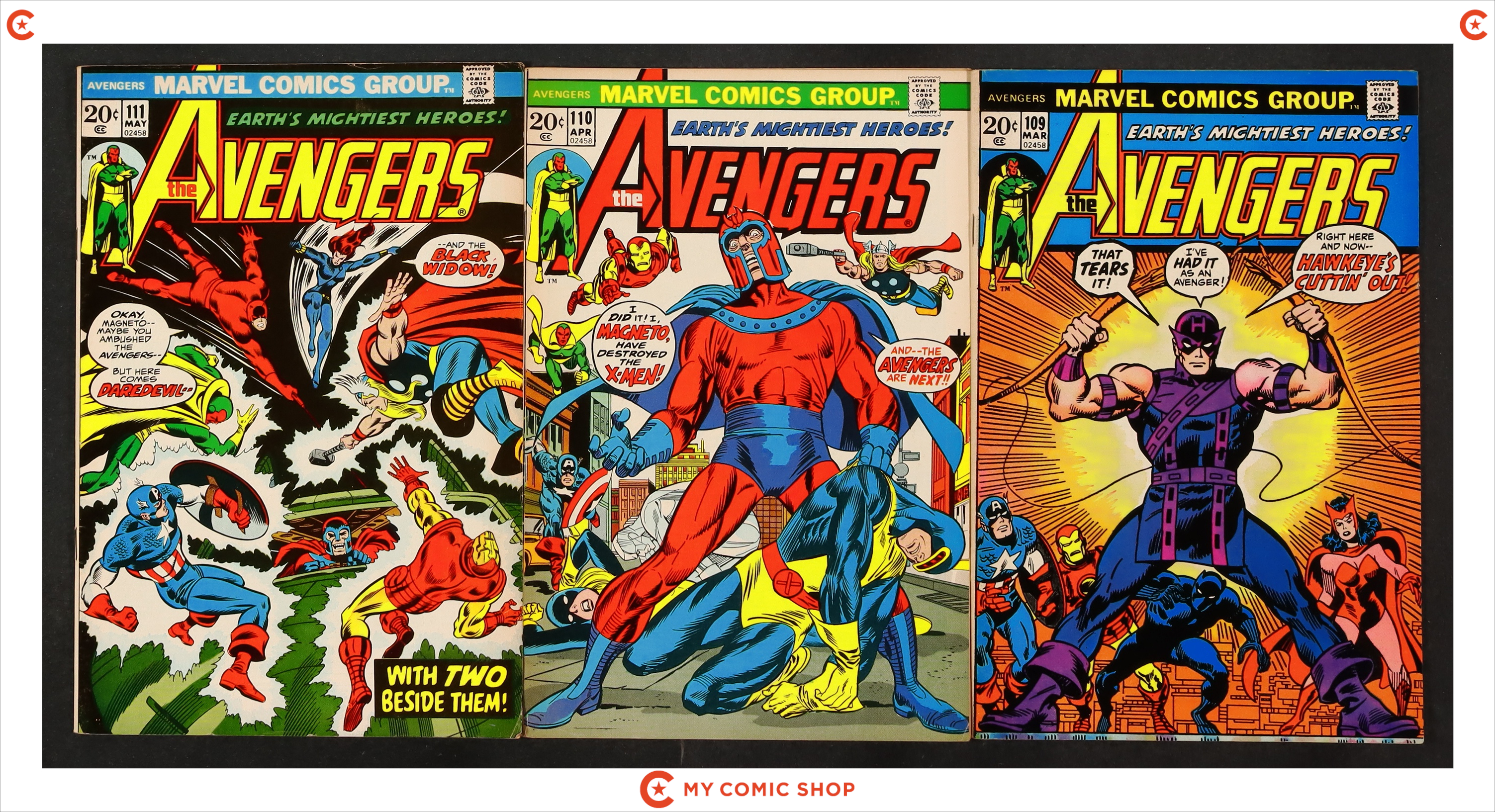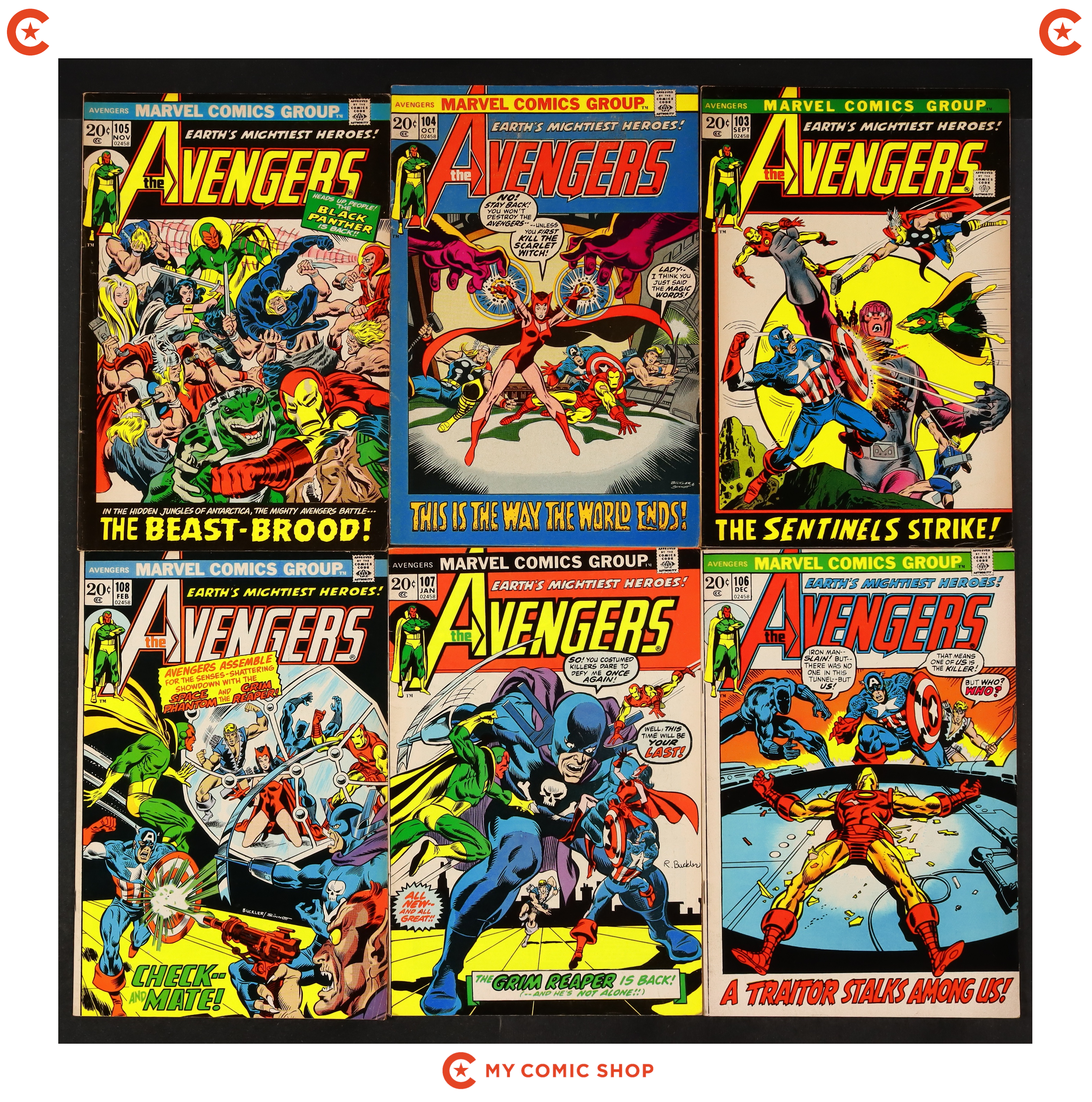 Issues 103, 104, 105, 106, 107, 108, 109, 110, 111 of Avengers (1963 1st Series). Most will grade in the VG+ to FN+ range.