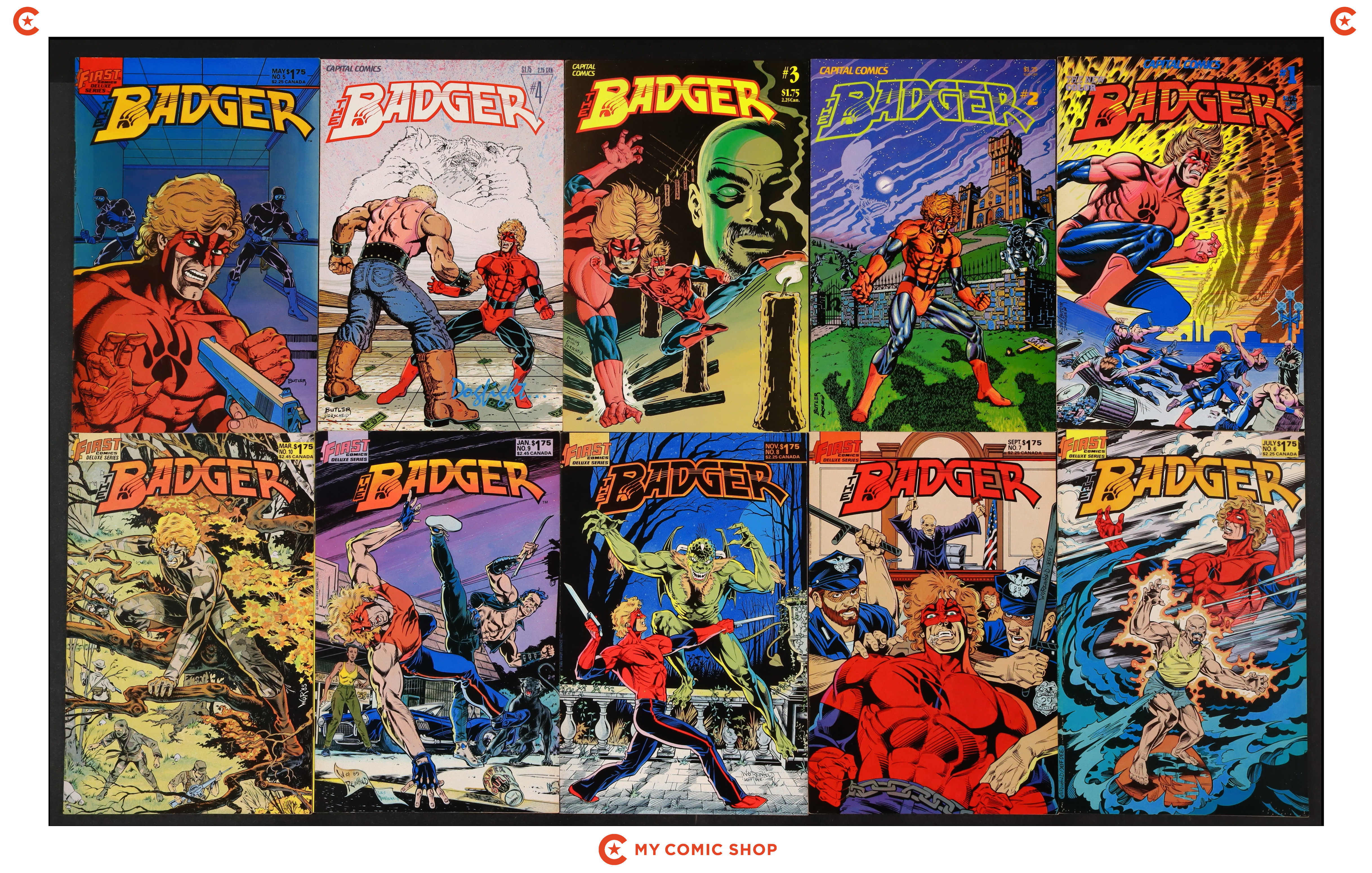 Issues 1-10 of Badger (1983 1st Series Capital/First). Most will grade in the FN to VF range.
