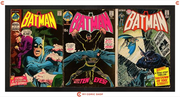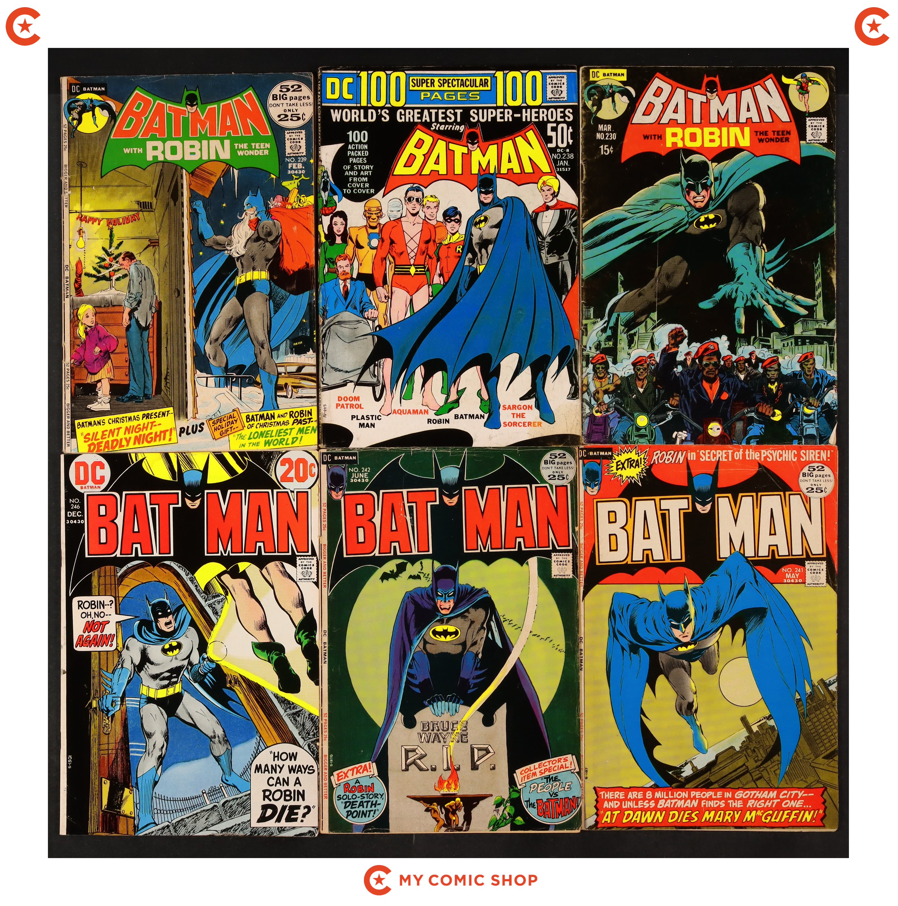 Issues 230, 238, 239, 241, 242, and 246 of Batman (1940). Most will grade in the VG range with a couple grading GD.
