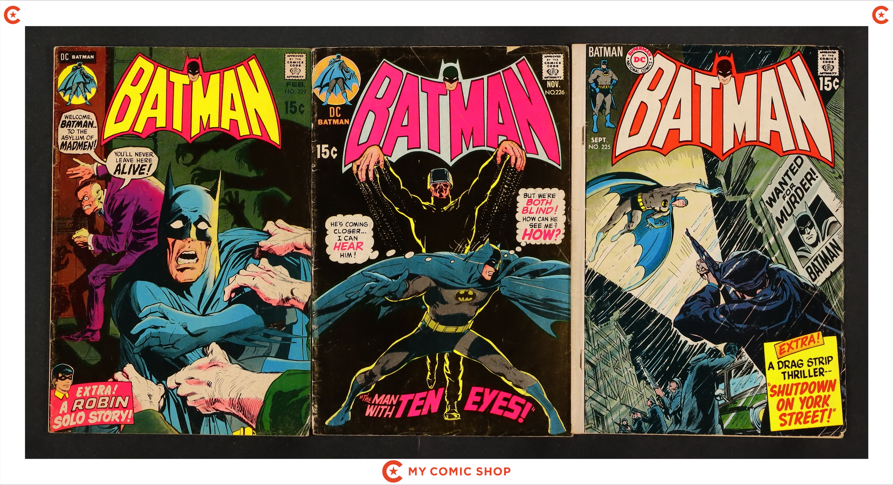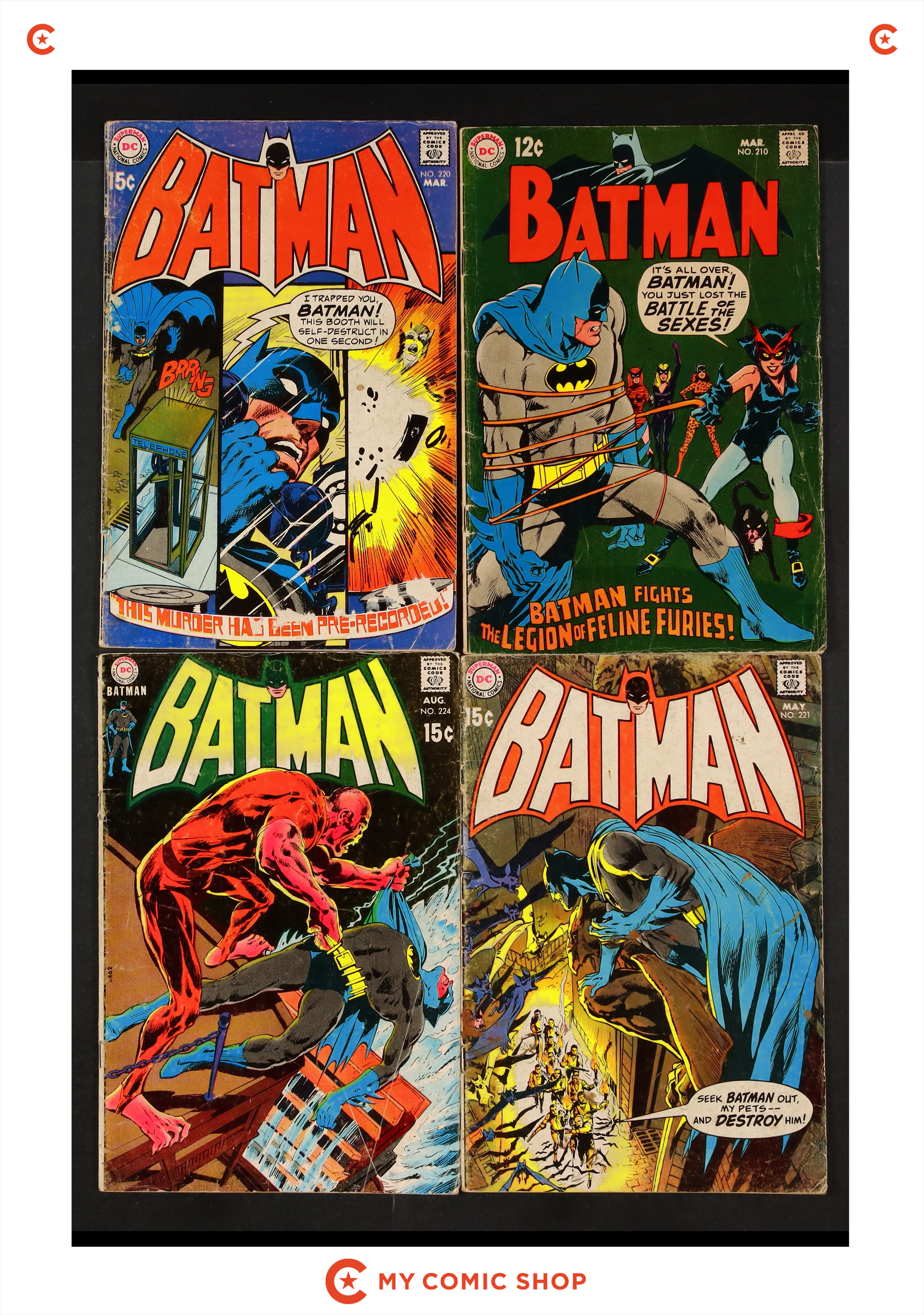 Issues 210, 220, 221, 224, 225, 226, 229 of Batman (1940). Most will grade in the FR/GD to GD/VG range.