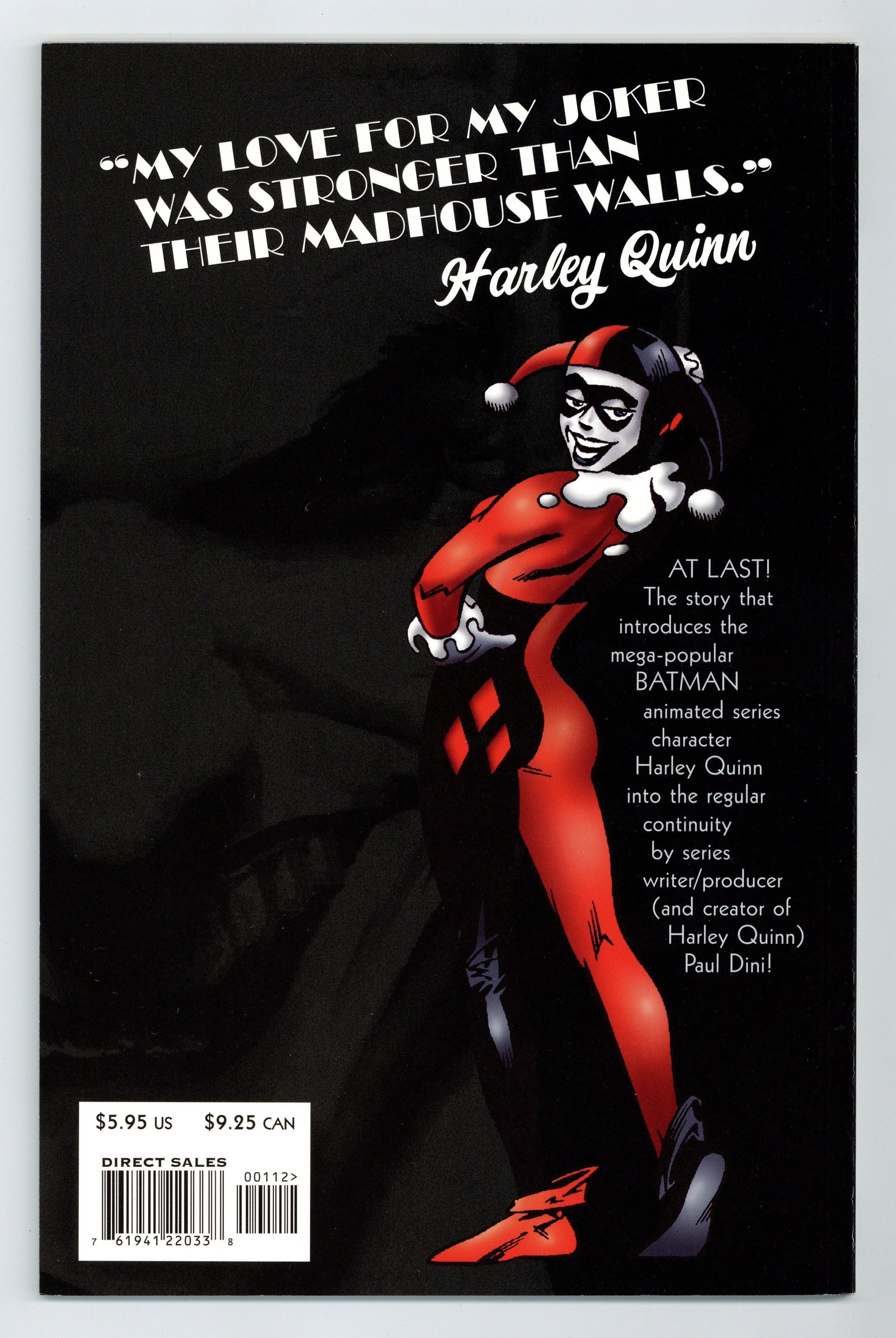Ends Apr 17 7:36 PM CST Bid History 5 bids Current Bid $50 Your Secret Max Bid If you'd like to bid, please log in or register. Foil Cover. Written by Paul Dini. Art by Yvel Guichet. Cover by Alex Ross. THE COMIC BOOK DEBUT OF HARLEY QUINN! You loved her on-screen antics in Batman: The Animated Series! You thrilled as she careened her criminal capers into comics with The Batman Adventures! Now get a front-row seat for Harley Quinn's calamitous core continuity debut--and see why Gotham City has never been the same! 48 pages, full color. Rated T+ Cover price $7.99.