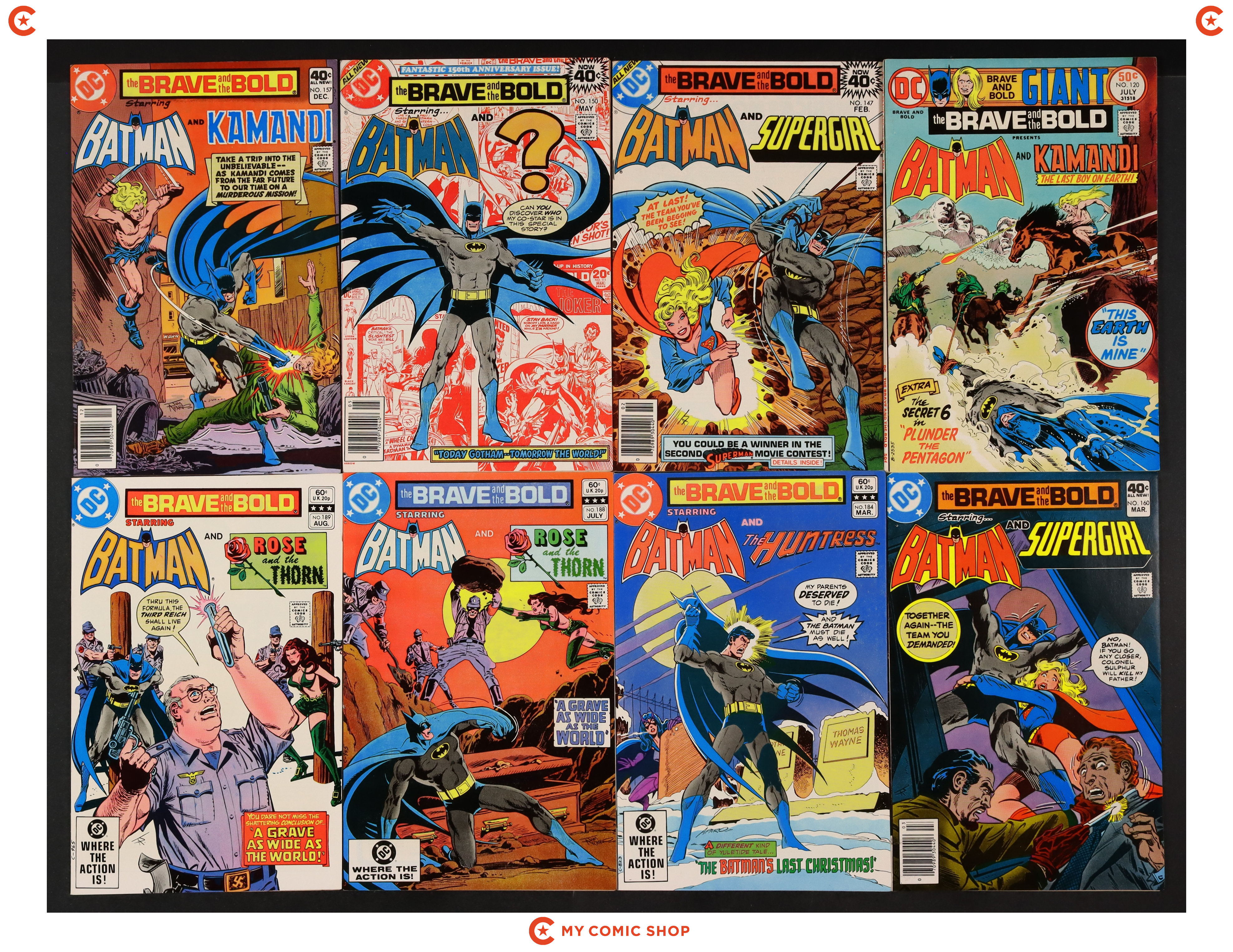 Issues 120, 147, 150, 157, 160, 184, 188, 189 of Brave and the Bold (1955 1st Series DC). Most will grade in the FN+ to VF range.