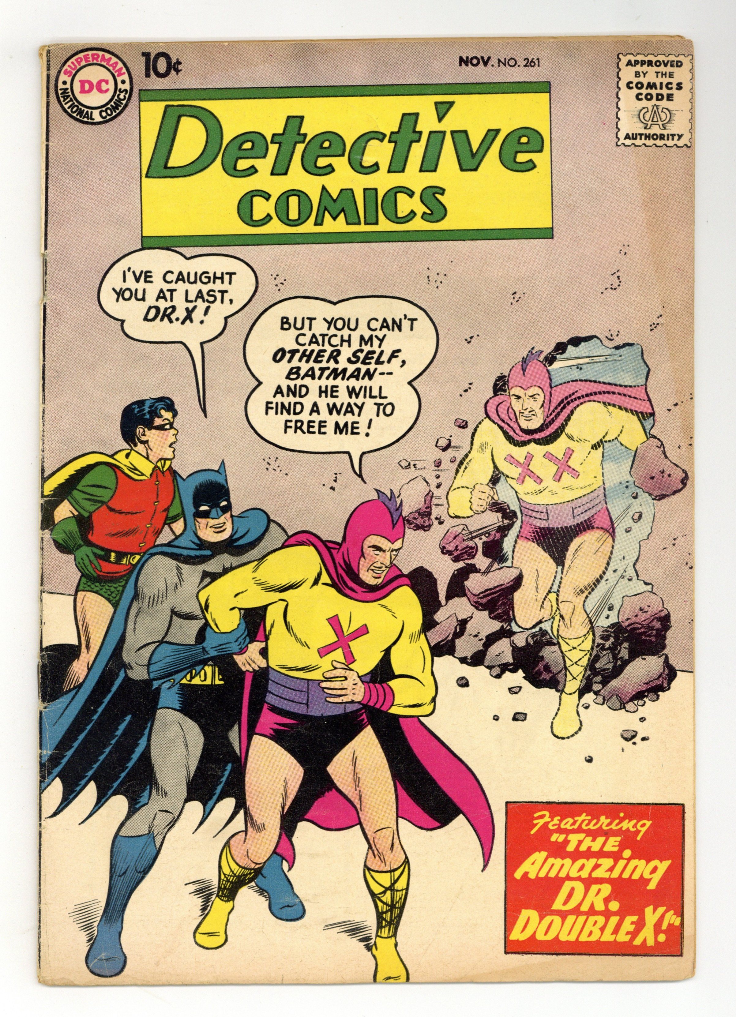 Starts Mar 2 Cover pencils by Curt Swan, inks by Stan Kaye. "The Thousand Deaths of Batman!" starring Batman and Robin, pencils by Sheldon Moldoff, inks by Charles Paris; A criminal director, for a price, stages plays for the underworld in which Batman and Robin actors are "killed," until the real Batman and Robin take the crook-actors places; After a few performances, the director becomes suspicious and finally learns the truth; During the night in which the leader of the gangsters is among the audience, the director has prepared deadly traps on stage to eliminate the Dynamic Duo. Warden Willis two-page humor by Henry Boltinoff. "The Menace of the Magnetic Meteorite!" starring Roy Raymond TV Detective, art by Ruben Moreira; Roy vs. Borgal. Half-page Casey the Cop story by Henry Boltinoff. "The Man Who Exposed John Jones" starring John Jones Manhunter from Mars, art by Joe Certa; A former film executive is operating a blackmail racket, and he thinks he can blackmail Detective Jones with proof he is a Martian. 36 pgs., full color. Cover price $0.10.