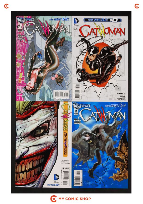 Issues 0, 1, 2, 13, 23, 35B, 39B of Catwoman (2011 4th Series). Most will grade in the VF to NM range with #2 grading FN.