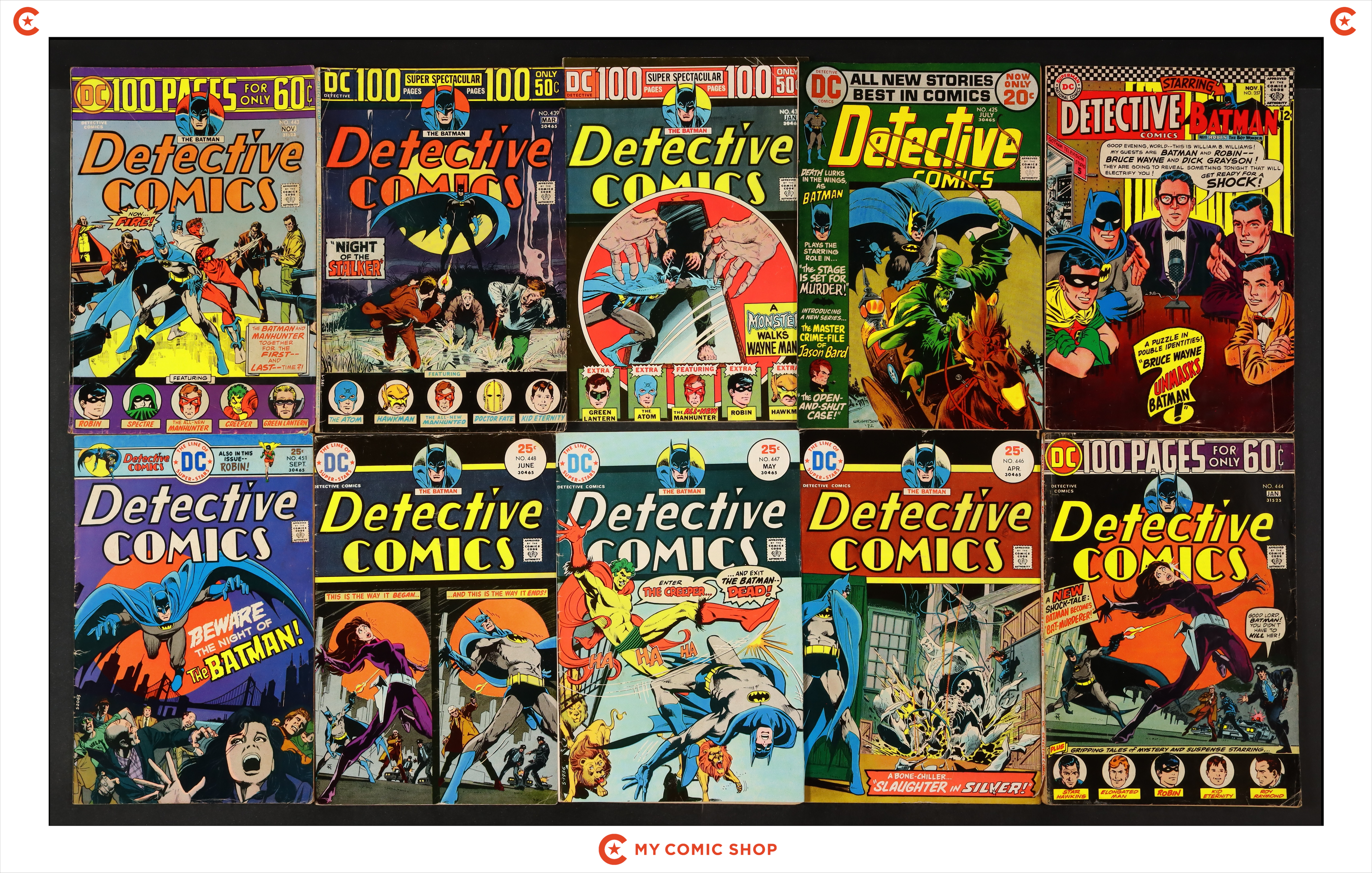 Issues 357, 439, 447, 448, 449, 450, 451, 452, 453, 454 of Detective Comics (1937 1st Series). Most will grade in the FR/GD to VG range.