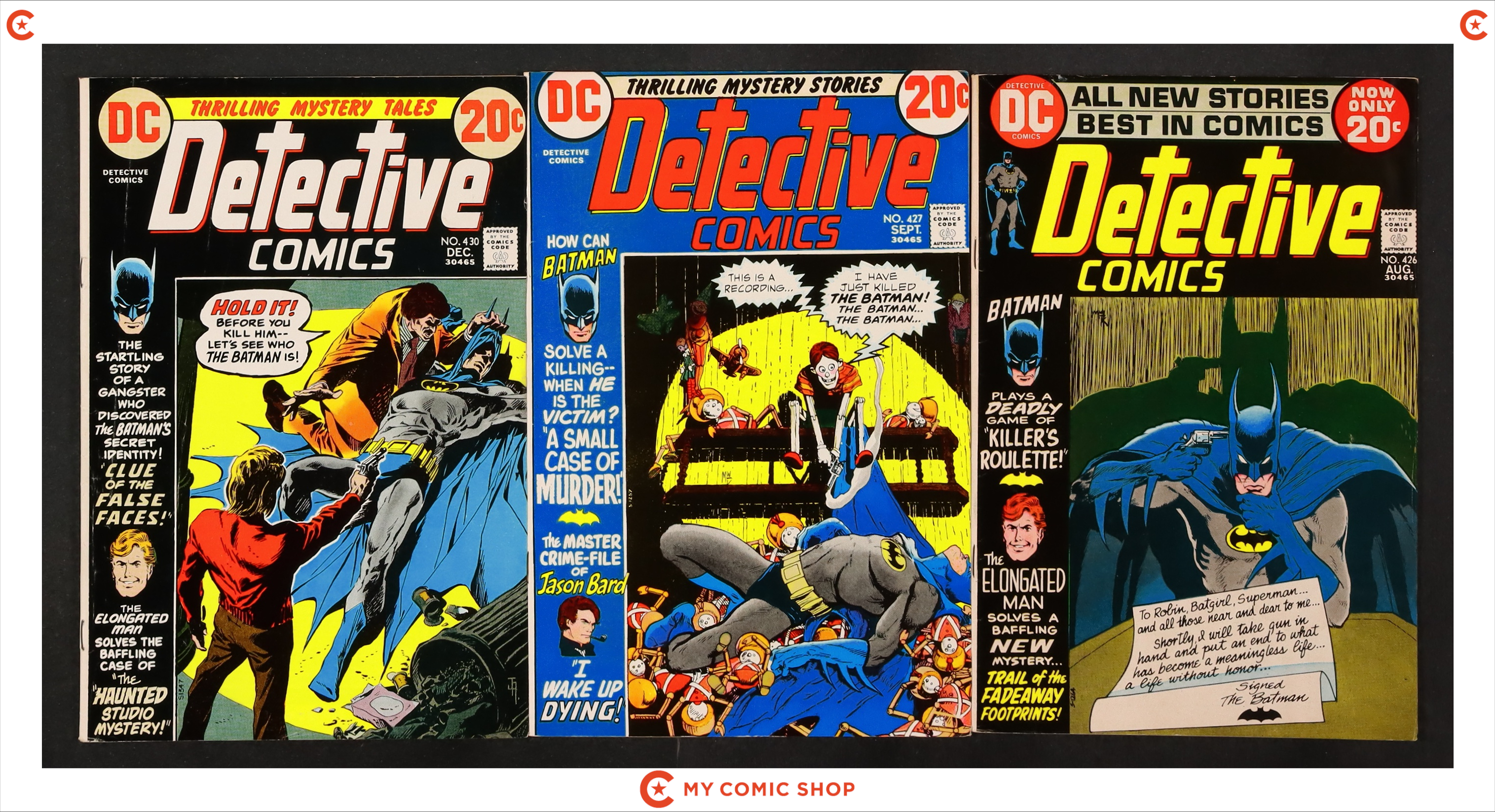 Issues 426, 427, and 430 of Detective Comics (1937 1st Series). Most will grade in the GD to VG range.