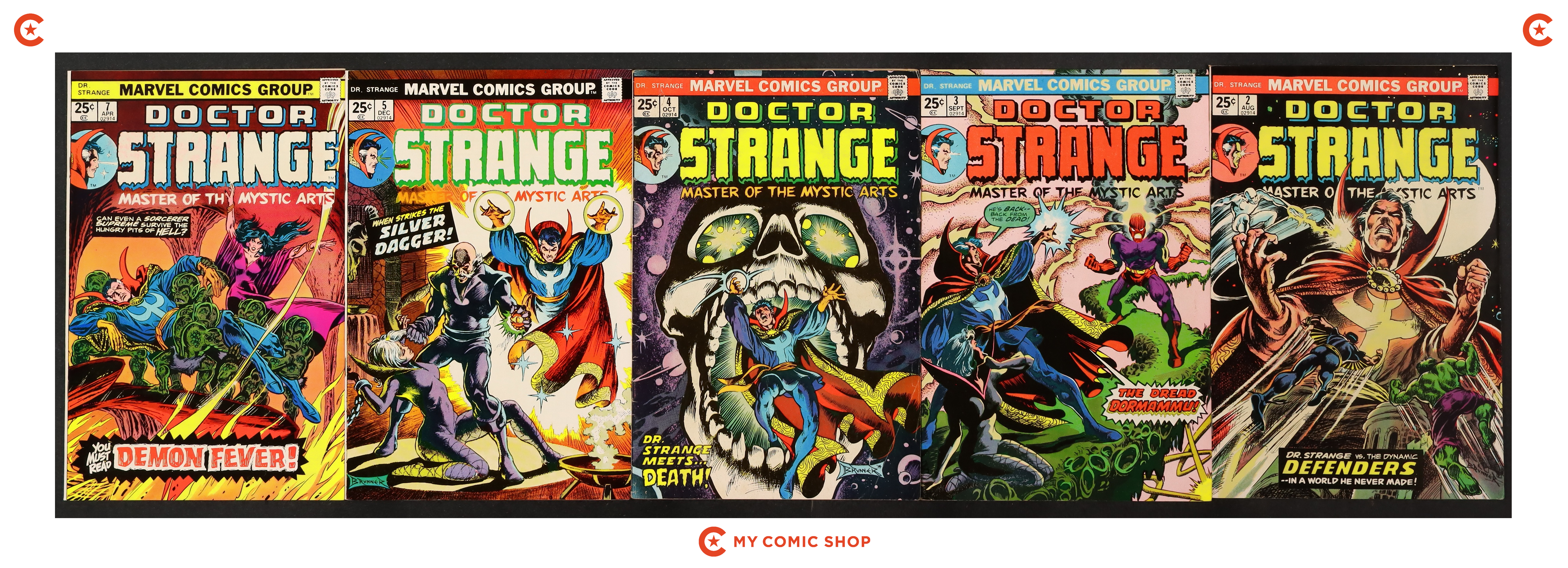 Issues 2-5, 7 of Doctor Strange (1974 2nd Series). Most will grade in the VG to FN range.
