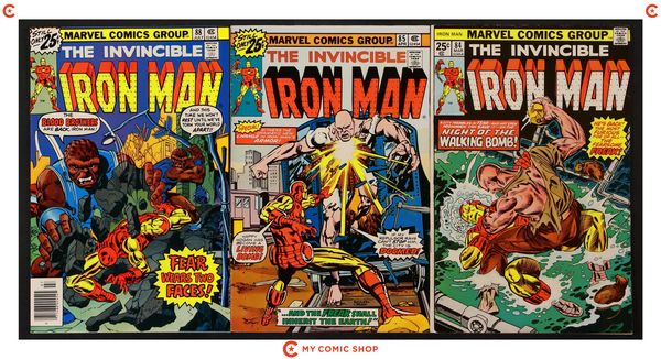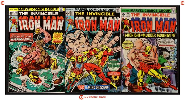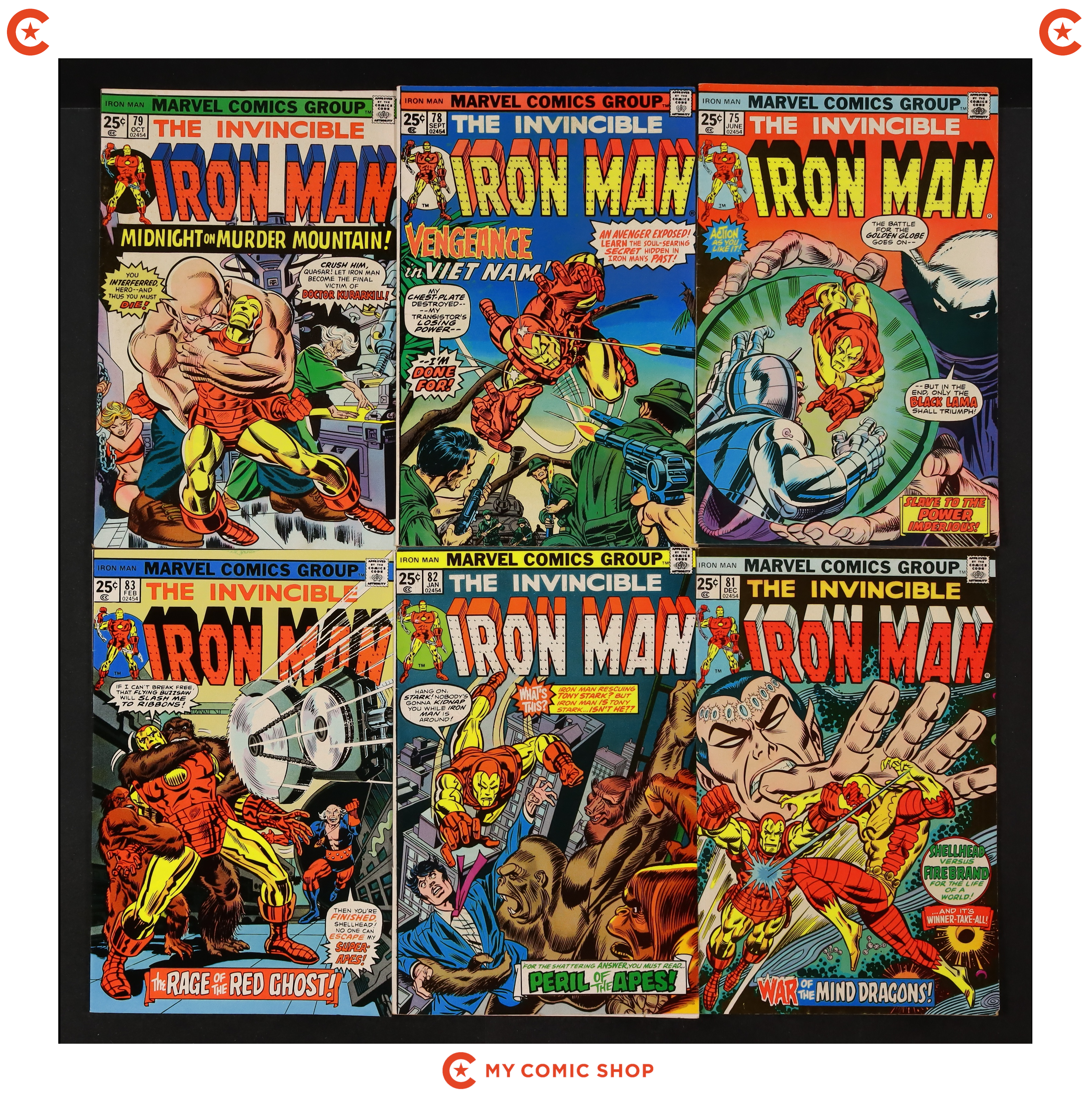 Issues 75, 78, 79, 81-85, and 88 of Iron Man (1968 1st Series). Most will grade in the FN to VG range.