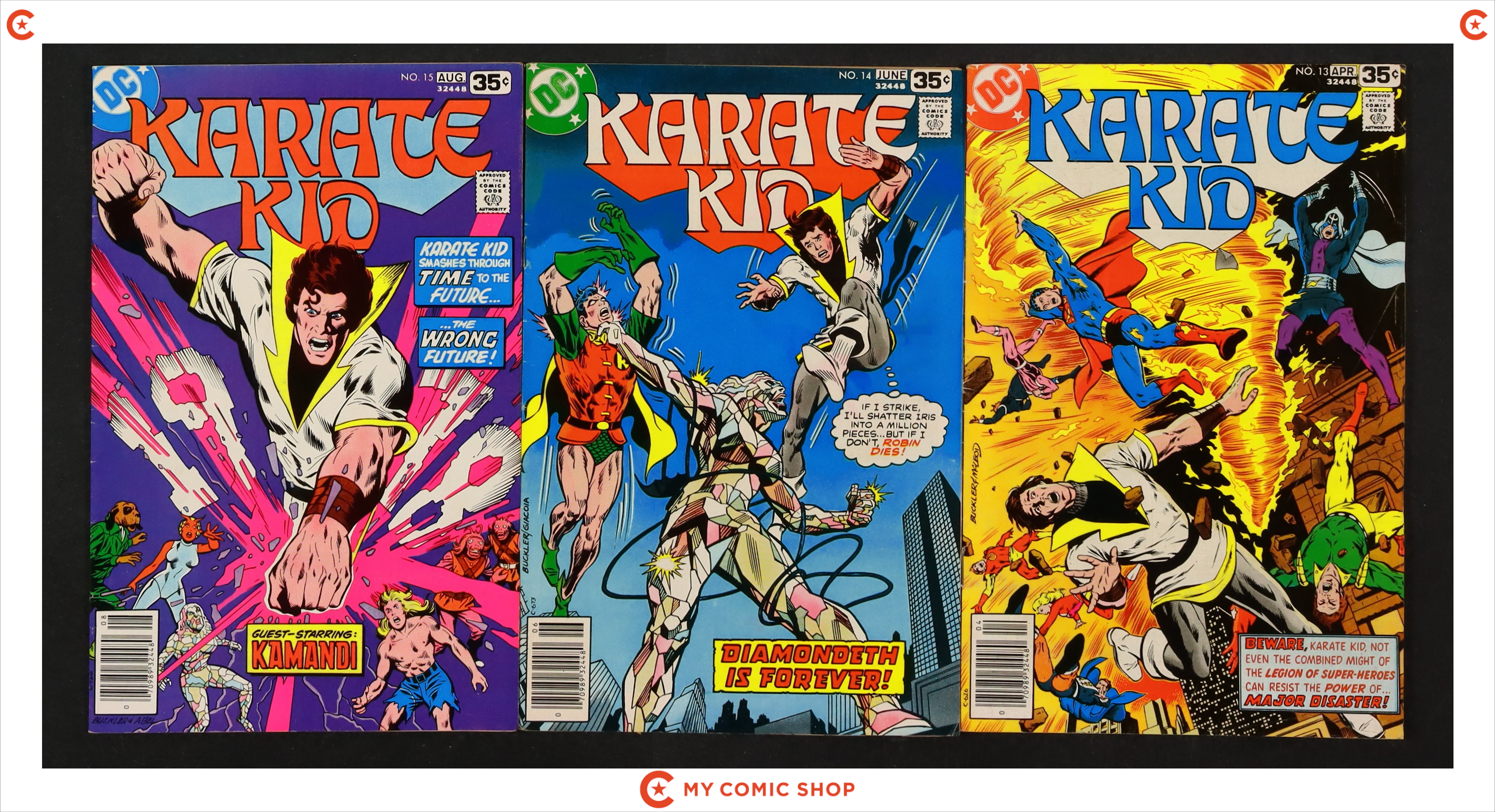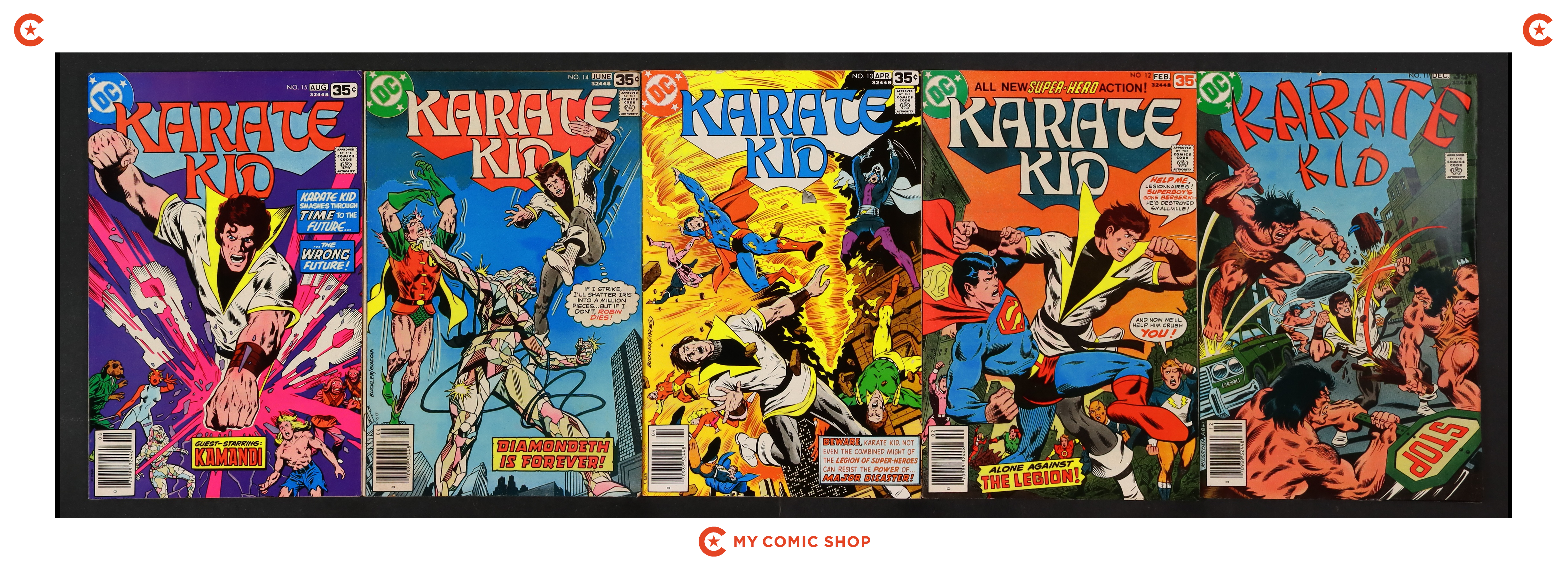 Issues 1-15 of Karate Kid (1976 DC). Most will grade in the VG to FN range with 10 grading GD and 2 grading VF.